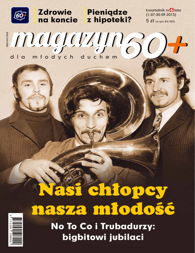 Zdrowie na koncie Pieniądze z hipoteki? kwartalnik nr 6 lato (1.07-30.09.2013) 5 zł (w tym 8% VAT) ISSN 2299-5080 d l a m ł o d y c h d u c h e m 9 7 7 2 299 Nasi chłopcy nasza młodość 508000 No To Co i Trubadurzy: bigbitowi jubilaci Magazyn 60+ | Facebook w numerze nr 6 lato (1.07-30.09.2013) kiedys to byly e j c a k a w Wpis Magazyn Edythe Kirchmaier, 105-latka z Kalifornii, po raz pierwszy siadła za kierownicą w 1927 roku. Niedawno zdała kolejny test drogowy, przedłużając swoje prawo jazdy. A co najważniejsze – przez 86 lat nie spowodowała żadnego wypadku i nie dostała mandatu! Wielkie brawa dla tej pani – w seniorach siła! Krzysztof fan Ważne, żeby umieć cieszyć się dniem dzisiejszym. Serdecznie pozdrawiam wszystkich z „dalszego ciągu młodości! Wesołe jest życie staruszka” – jak śpiewał W. Michnikowski – co dedykuję nam Wszystkim! Ewa fanka Kto tu mówi o starości? Kochani: biegam, chodzę po górach, jeżdżę na rowerze i kocham taniec – nie mam czasu się starzeć! Krystyna fanka Myślę, że u młodych częściej słyszy się: nudzę się albo mam doła! My nie umiemy się nudzić. Nuda jest zaprzeczeniem szczęścia. Zapraszamy na profil „Magazynu 60+” na Facebooku! www.facebook.pl/magazyn60plus Zdrowym być 3 Kiedy będziemy starzeć się zdrowo? 5 Ruch odmładza kości 8 Nadciśnienie nie wygoni Cię do lekarza 11 Magnetyczny superszpieg 14 Ból pod napięciem 16 Ciągle młody ostropest Program 60+ 18 Twoje zdrowie na koncie 23 Senior udziela pomocy Piękne Życie 26 Nasi chłopcy, nasza młodość 33 Polański. Dżentelmen czy skandalista? 36 Wreszcie szczęśliwa, wreszcie nigdy głodna 39 Poranna kawa u mamy 41 Spacer doliną Issy 44 Jak raz sławny się stałem… Felieton Jana Turnaua zdrowym być Znasz Prawo, Masz Prawo 45 Pewne pieniądze z hipoteki? Szanowni Państwo! PODPOWIEDZI 50 Nie takie konto bankowe straszne W wolnej chwili 52 Nie możemy „zardzewieć”! 55 Chcesz do setki siedzieć w fotelu? 58 Senior. Felieton Jerzego Bralczyka 59 „Sekcja seniora” w Cannes 61 Koszyk kulturalny 63 Namów wnuczka na wycieczkę 66 Konkurs: Kiedyś to były wakacje! 69 Krzyżówka 70 Sudoku nasza okładka: słowem wstępu Ależ wyczekiwaliśmy tego lata! Zima straszyła nas długo mrozem, wiosna zalewała deszczem. Miejmy nadzieję, że latem skąpiemy się w słońcu. A „Magazyn 60+”– jestem tego pewny – umili Państwu czas przy kawie na działce, po wędrówce nadmorskim brzegiem czy po spacerze deptakiem w uzdrowisku. W tym wydaniu razem z Wami wracamy do niezapomnianych wakacji sprzed lat – publikujemy Państwa wakacyjne wspomnienia, w których zabierają nas Państwo do świata swojej młodości, dzieciństwa. A jeśli o dawniejszych czasach mowa, poszukaliśmy członków zespołów bigbitowych, bez których piosenek nie mogła się odbyć żadna prywatka. Koniecznie przeczytajcie Państwo artykuł o Koncie Zdrowotnym 60+, które utworzył dla Was Program 60+ – każdy z uczestników programu może tu zobaczyć, jak się leczy i ile go to kosztuje. Na koniec warto pomyśleć o udziale w jesiennych wykładach uniwersytetów trzeciego wieku. Namawiam do zaplanowania sobie tego już teraz. Po co? Dowiedzą się Państwo z materiału „Nie możemy zardzewieć”. trubadurzy. Od lewej: Marian Lichtman, Sławomir Kowalewski, Krzysztof Krawczyk FOT. ARCHIWUM ZESPOŁU Ryszard Bonisławski redaktor naczelny Wydawca: ePRUF S.A. ul. Zbąszyńska 3, 91-342 Łódź tel. 42 200 75 68 fax 42 200 78 99 www.epruf.pl Reklama: Content Media [email protected] tel.: 502 499 456 Anna Tomczak, tel. 785 864 607 [email protected] Redaktor naczelny: Ryszard Bonisławski Projekt, skład: Beata Grabska Sekretarz redakcji: Marek Wilczak [email protected] tel. 42 6811066 Druk magazynu: Drukarnia Prasowa S.A. al. J. Piłsudskiego 82, 92-202 Łódź Nakład – 150 tys. egz. Redakcja zastrzega sobie prawo do skrótów i redakcyjnego opracowania tekstów przyjętych do druku. Redakcja nie ponosi odpowiedzialności za treść zamieszczanych ogłoszeń i reklam. BĄDŹ EKOLOGICZNY. Wyrzucając papier, wybierz odpowiedni pojemnik. Kiedy będziemy starzeć się zdrowo? Rozmowa z prof. dr. hab. n. med. Markiem M. Kowalskim, dyrektorem Centrum Badań nad Zdrowym Starzeniem, które powstało przy Uniwersytecie Medycznym w Łodzi Czy można starzeć się zdrowo? Prof. Marek M. Kowalski: Tak. Zdrowe starzenie się jest możliwe, jeżeli osobie starszej udaje się utrzymać aktywność i dobre samopoczucie, czyli Prof. Marek optymalny dobrostan fizyczM. Kowalski ny, umysłowy i społeczny. Jak to osiągnąć? Najważniejsza jest dbałość o aktywność fizyczną, która powinna być dostosowana do indywidualnych możliwości oraz dbałość o zdrowe odżywianie się. Nieocenione znaczenie ma też aktywność społeczna i umysłowa. To wysoko podniesiona poprzeczka. Mało kto tak żyje, a nawet wielu z tych, którzy o siebie dbają, nie starzeje się zdrowo. Zresztą gdyby starzenie się przebiegało bezproblemowo, zapewne nie powstałoby Centrum Zdrowego Starzenia… Ma pan rację. Osoby starsze, a więc mające ponad 65 lat, częściej chorują, jest dużo chorób charakterystycznych dla tego wieku, takich jak miażdżyca, nadciśnienie czy choroby ośrodkowego układu nerwowego. Wiele osób cierpi na kilka schorzeń jednocześnie; często są to choroby przewlekłe. To oczywiście bardzo obniża samopoczucie seniorów, ale również rodzi poważne problemy medyczne. Na przykład znacznie utrudnia leczenie, gdyż leki skuteczne na jedną chorobę mogą potęgować objawy innej. Jeżeli nie będziemy coraz więcej na ten temat wiedzieć, nie będzie postępu w hamowaniu rozwoju pewnych chorób. Z tego względu konieczne są badania nauko- MAGAZYN 60+ 3 zdrowym być zdrowym być we i między innymi dlatego powstało Centrum Badań nad Zdrowym Starzeniem. Przecież uczeni już od dawna zajmują się geriatrią i innymi dziedzinami mającymi na celu p