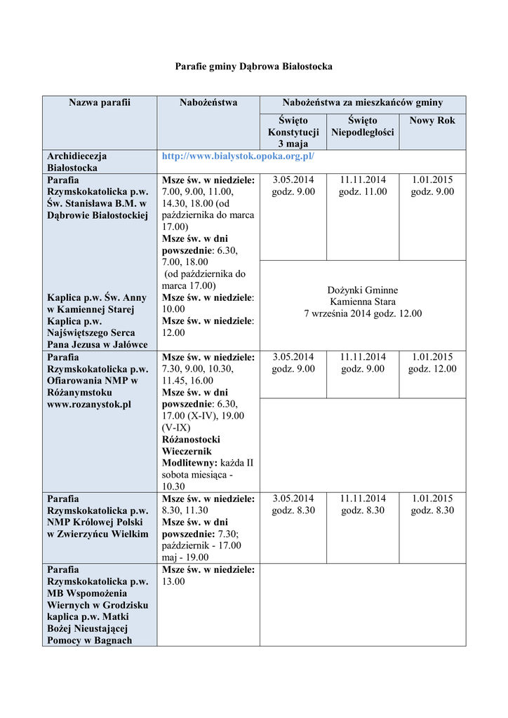 Parafie gminy Dąbrowa Białostocka Nazwa parafii Nabożeństwa
