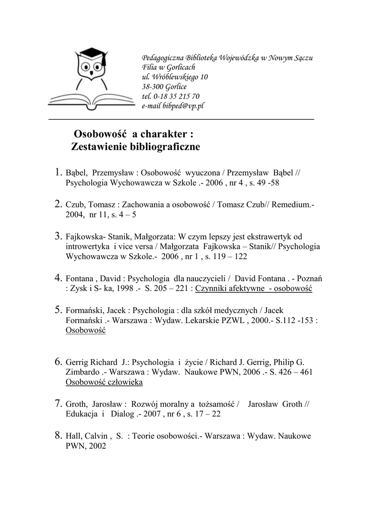 Osobowość a charakter - Biblioteka Pedagogiczna w Gorlicach