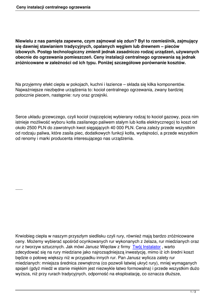 obecnie do ogrzewania pomieszczeń. Ceny instalacji centralnego ogrzewania są jednak