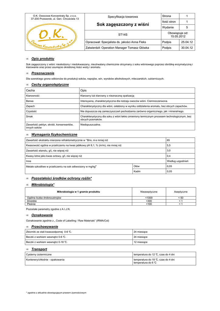 ST14S wyd.5 - OK Owocowe Koncentraty Sp. z oo