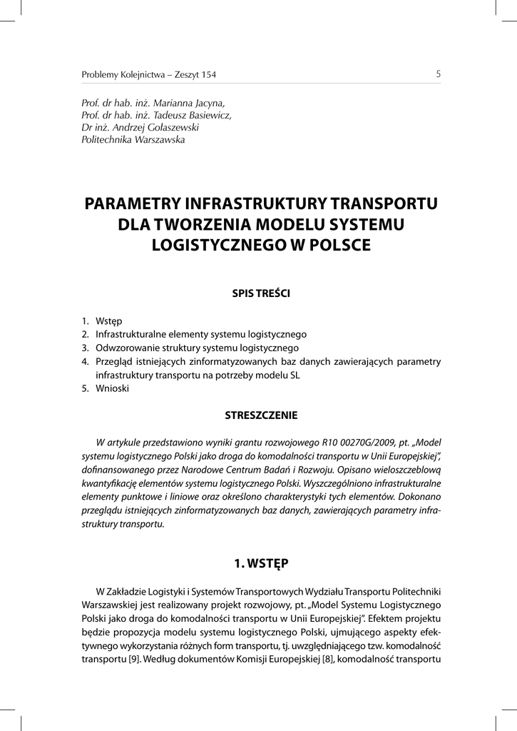 M. Jacyna, T. Basiewicz, A. Gołaszewski