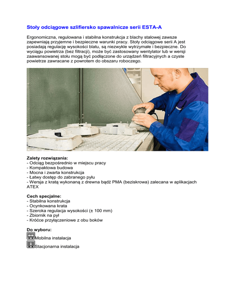 Stoły odciągowe szlifiersko spawalnicze serii A ESTA
