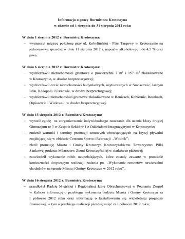 Informacja o pracy Burmistrza Krotoszyna w okresie od 1 sierpnia do