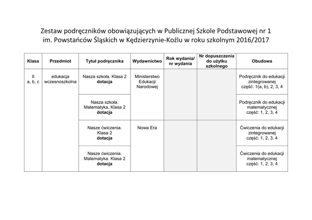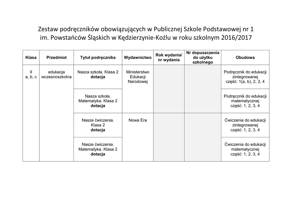 Wykaz podręczników - Publiczna Szkoła Podstawowa nr 1 w