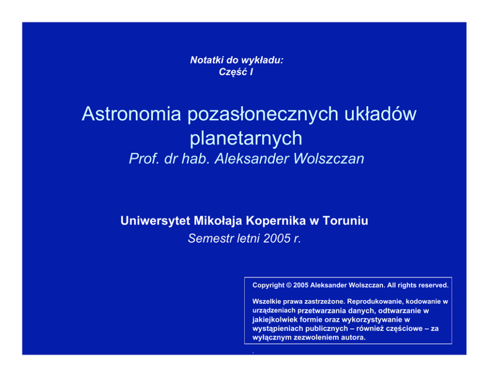 Copyright © 2005 Aleksander Wolszczan. All rights reserved.