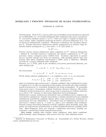 Key words: rozkÃlady sÃlabo stabilne, sploty uogólnione, sÃlabe sploty uogólnione,