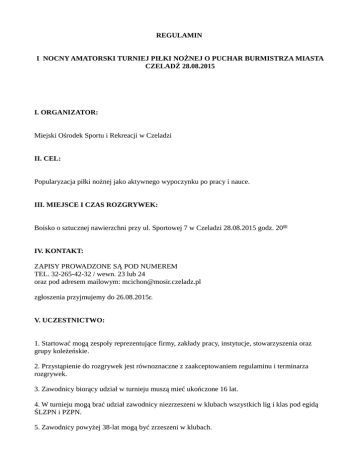 REGULAMIN I NOCNY AMATORSKI TURNIEJ PIŁKI NOŻNEJ O