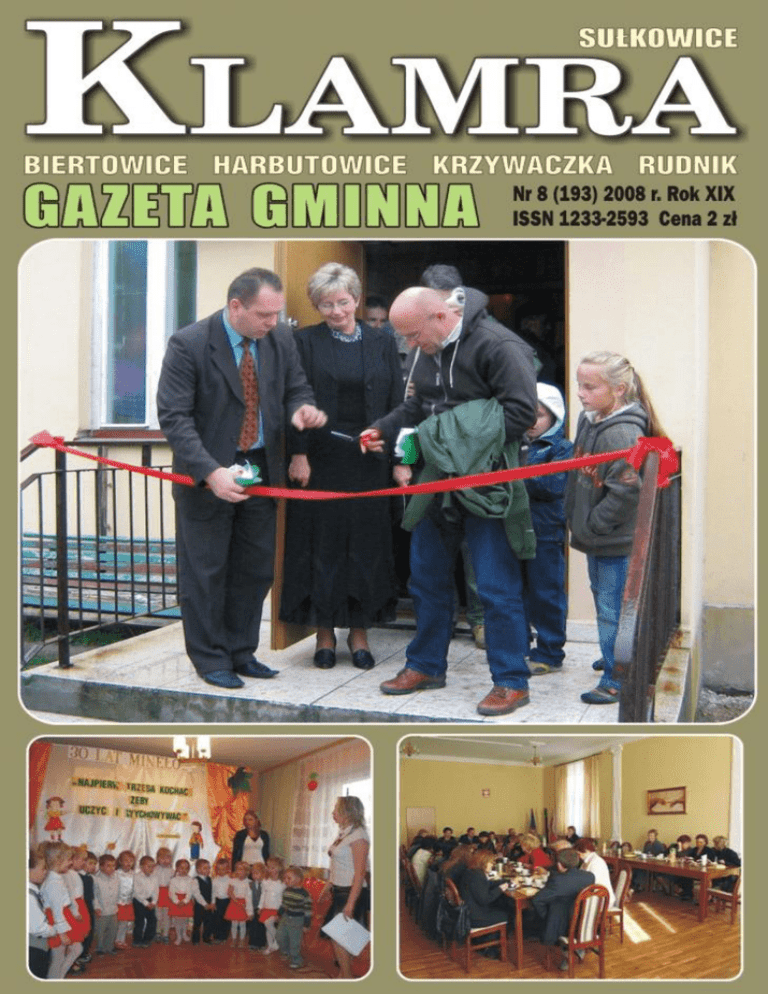 30 LAT PRZEDSZKOLA NR 3 Do roku 1978 w Su³kowicach by³y dwa przedszkola: jedno ko³o rynku, drugie w pomieszczeniach FN „KuŸnia”. Przedszkola te nie zaspokaja³y potrzeb œrodowiska w objêciu dzieci wychowaniem przedszkolnym, zw³aszcza 6-ciolatków. Górna czêœæ Su³kowic – ulice Kowalska, Na Wêgry, Starowiejska, Partyzantów oraz Harbutowice od Tablic nie mog³a liczyæ na to, aby ich dzieci mog³y uczêszczaæ do przedszkola ze wzglêdu na brak miejsc, jak równie¿ na pokonywanie prawie 3 km odleg³oœci. Nale¿y pamiêtaæ, ¿e nie by³o wtedy tyle samochodów co dziœ, a komunikacja PKS kiepska. Gminny Dyrektor Szkó³ Stanis³aw Szybowski, cz³owiek ogromnie zas³u¿ony dla Su³kowic i ca³ej gminy, stara³ siê obj¹æ wychowaniem przedszkolnym jak najwiêcej dzieci. Chodzi³o o stworzenie warunków równego startu do podjêcia nauki w szkole, zw³aszcza 6-ciolatkom. Ognisko przedszkolne przy szkole w rynku przygotowywa³o w niewielkim stopniu dzieci z górnej czêœci Su³kowic do podjêcia przysz³ych obowi¹zków szkolnych – dzia³a³o dwa razy w tygodniu po 2-3 godziny. Coraz bardziej nasila³a siê potrzeba zaistnienia trzeciego przedszkola. Na wiêksz¹ inwestycjê nie by³o pieniêdzy. Wtedy nadarzy³a siê okazja: W³adys³aw Biela chcia³ sprzedaæ po³owê „bliŸniaka”, który wybudowa³ ze swym bratem Janem. Budynek ten zosta³ zakupiony i poczyniono prace adaptacyjne dla potrzeb przedszkola. Funkcjê Dyrektora Przedszkola Nr 3 w Su³kowicach powierzono mi od lipca 1978 roku. Wczeœniej przez 11 lat pracowa³am w przedszkolu nr 2 w „KuŸni”. W sierpniu zosta³y zatrudnione nauczycielka i personel administracyjno-obs³ugowy. Od lipca zaczê³a siê ci¹g³a praca, której celem by³o uruchomienie placówki od wrzeœnia. Trudnoœci by³o wiele: sytuacja gospodarcza w kraju, brak funduszy na wyposa¿enie. W pracach wykoñczeniowych i gospodarczych pomagali mi rodzice zapisanych do przedszkola dzieci (przygotowanie drewna na opa³, sk³adowanie wêgla, koksu...) oraz mój m¹¿, który przywozi³ co trzeba by³o, pomaga³ w urz¹dzaniu sal dla dzieci. 4 wrzeœnia 1978 roku przedszkole nr 3 rozpoczê³o dzia³alnoœæ. Uda³o siê w ci¹gu dwóch miesiêcy wykonaæ ogrom prac, pomimo wielu trudnoœci. Oficjalne otwarcie placówki nast¹pi³o w paŸdzierniku. Pocz¹tkowo przez 1 rok przedszkole funkcjonowa³o jako jedno oddzia³owe, ale ju¿ w 1979 roku ze wzglêdu na ogromne potrzeby œrodowiska pracowa³o jako dwu oddzia³owe i tak jest do dziœ. Placówka nie posiada³a placu zabaw dla dzieci, ale i to uda³o mi siê szybko za³atwiæ. Przychylni przedszkolu gospodarze odsprzedali przylegaj¹ce grunty do dzia³ki przedszkolnej. Urz¹dziliœmy skromny plac zabaw, nastêpnie pozyska³am œrodki od Zarz¹du FN „KuŸnia” na zakup urz¹dzeñ ogrodowych dla dzieci. W numerze Relacje z sesji Rady Miejskiej s.5 Gminne Œwiêto Edukacji s. 6 „Miêdzy Dalinem i Goœcibi¹” – szlak przetarty s. 6 Przedszkola w Su³kowicach s. 7-10 m.in. 30 lat przedszkola nr 3 Rudnik: S³owa ucz¹, przyk³ady poci¹gaj¹ s. 11 Su³kowice: Szkolne wiadomoœci s. 11 Z historii Zespo³u Placówek Oœwiatowych w Krzywaczce s. 12-13 Œwiêto Szko³y w Harbutowicach s. 13 Dla ka¿dego ucznia obiad za 3,50 z³ s. 14-15 „Aktywni razem” s. 15 cd. na stronie 7 Rola œwietlic œrodowiskowych w lokalnym systemie wychowania s. 16-17 Nowy plac zabaw w Biertowicach Azyl w Œwietlicy Œrodowiskowej „Pod Szczêœliwym Anio³em” s. 17 W dniu 4. paŸdziernika br. nast¹pi³o otwarcie nowego placu zabaw, który znajduje siê przy przedszkolu. Dla spo³ecznoœci uczniowskiej Biertowic jest to bardzo wa¿ne wydarzenie, gdy¿ do tej pory trudno by³o znaleŸæ miejsce do zabawy dla najm³odszych dzieciaków. Wiadomoœæ o budowie ma³ego miasteczka komunikacyjnego i placu zabaw spad³a na nas niespodziewanie. W drugiej po³owie sierpnia w rozmowie z zastêpc¹ burmistrza – pani¹ Rozali¹ Oliw¹, dowiedzia³am siê, ¿e s¹ pewne plany co do sfinansowania takiego placu przez Fundacjê BGK im. J.K. Steczkowskiego w Warszawie. W ostatnich dniach wakacji nadesz³o potwierdzenie – ta wiadomoœæ by³a ju¿ pewna. Wiele osób pyta³o mnie, jak to siê sta³o, ¿e wzbudziliœmy zainteresowanie Fundacji? Otó¿ gmina Su³kowice zosta³a w 2008 r. laureatem Konkursu ,,Wzorcowy Urz¹d w Ma³opolsce” za wdro¿enie rozwi¹zania zarz¹dczego pn. „Najwa¿niejsi s¹ ludzie. Pomoc w³adz gminy pobudzaniu aktywnoœci spo³ecznej na rzecz potrzebuj¹cych”. Fundatorem nagród w tym konkursie jest Bank Gospodarstwa Krajowego. Pani dyrektor Oddzia³u Banku Gospodarstwa Krajowego w Krakowie Katarzyna Ro¿yñska, która zasiada w Kapitule Konkursu „Wzorcowy Urz¹d”, zwróci³a uwagê na dzia³ania w³adz Su³kowic w zakresie wspó³pracy z organizacjami spo³ecznymi i poleci³a nasza gminê Fundacji BGK im. J.K. Steczkowskiego. Fundacja realizuje program pn. „Bezpieczny Przedszkolak. Twórczy Przedszkolak”, którego celem jest nauka przedszkolaków zasad bezpieczeñstwa na drodze, w domu oraz w kon- taktach z nieznajomymi oraz stworzenie ma³ym dzieciom warunków do bezpiecznego rozwoju. Fundacja stawia³a wymogi co do lokalizacji i oczywiœcie w grê wchodzi³o tylko przedszkole wiejskie. Nie ulega wiêc w¹tpliwoœci, ¿e nasze przedszkole, które wskaza³ pan burmistrz, w pe³ni spe³nia te warunki. Dodatkowo przedstawicielom fundacji zale¿a³o, ¿eby w budowê zaanga¿owali siê szczególnie rodzice dzieci oraz ca³a spo³ecznoœæ wsi. W pierwszych dnach wrzeœnia zawita³a do nas delegacja z Warszawy. Pañstwo Adrianna Lepka i Rados³aw ¯uk przyjechali na miejsce, ¿eby omówiæ szczegó³y planu budowy placu zabaw z elementami miasteczka komunikacyjnego dla najm³odszych. Wtedy te¿ zosta³y poczynione ustalenia z organem prowadz¹cym co do lokalizacji oraz rozmiarów placu. Nastêpne tygodnie naznaczone by³y ciê¿k¹ prac¹. Wiedzieliœmy, ¿e czasu nie ma za wiele, a pogo