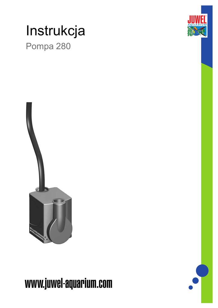 Instrukcja MODE Pompa D'EMPLOI280 PUMPE 280 www.juwel-aquarium.com www.juwel-aquarium.com Wstęp Cieszymy się, że zdecydowali się Państwo na zakup produktu firmy JUWEL Aquarium i dziękujemy za okazane nam zaufanie. Nasze produkty są produkowane z zachowaniem największej staranności i przy użyciu najnowocześniejszej techniki. Do wytworzenia tych produktów przyczyniło się ponad 30 lat doświadczeń w produkcji akwariów i akcesoriów do nich. Są one zaprojektowane i wyprodukowane według najnowszego stanu techniki i badań naukowych w dziedzinie ich wykorzystywania. Wskazówki bezpieczeństwa: Urządzenie to nie jest przeznaczone do stosowania przez osoby (łącznie z dziećmi) o ograniczonych zdolnościach fizycznych, sensorycznych lub psychicznych bądź osoby bez wymaganego doświadczenia i/lub wiedzy, chyba że będą one nadzorowane przez osobę odpowiedzialną za ich bezpieczeństwo lub zostaną pouczone w zakresie obsługi urządzenia. Należy nadzorować dzieci, aby nie używały urządzenia do zabawy. Przed kontaktem z wodą należy wyciągnąć wtyczki sieciowe wszystkich eksploatowanych w wodzie urządzeń. Praca tylko z wyłącznikiem różnicowo-prądowym, maks. 30mA. Wtyczki sieciowe urządzeń elektrycznych nie mogą być wilgotne. Podłączać wtyczki elektryczne do sieci prądu na takiej wysokości, aby przewód przyłączeniowy tworzył pętlę, po której będzie spływała woda. 2 Montaż pompy w systemie filtracyjnym JUWEL Sposób postępowania: 1. Wszystkie elementy elektryczne akwarium odłączyć od gniazda wtykowego. 2. Pozostawić grzejnik do ostygnięcia przez ok. 30 minut. 3. Wyjąć grzejnik i umieścić go w bezpiecznym miejscu (nie kłaść grzejnika na łatwopalne podłoże). 4. Wyjąć elementy filtrujące z wyciągniętego wkładu filtra. 5. Wyciągnąć do góry ściankę działową i wyjąć z filtra ściankę działową i pompę. 6. 7. 8. 9. 6. Przymocować do ścianki działowej nowy uchwyt pompy. 7. Założyć na uchwyt nową pompę i mocno ją wepchnąć. Jeżeli jest używana, ponownie założyć rurę wznośną. 8. Ściankę działową z pompą i, ewentualnie, rurą wznośną ponownie włożyć do obudowy filtra. 9. Włożyć do obudowy filtra elementy filtrujące wkładu i mocno docisnąć je w dół. 10. Zamontować w filtrze grzejnik. Filtr i pompa są teraz gotowe do użycia i mogą ponownie zostać przyłączone do sieci zasilania. Maintenance Konserwacja de la pompe JUWEL 280 pompy 280 JUWEL Votre pompePompa de circulation JUWELfirmy Aquarium n'exige que peu entretien. Vous konserwacji. devriez do akwarium JUWEL wymaga jedynie niewielkiej Pomimo cependant vérifier son bon fonctionnement à intervalles tego należy w regularnych odstępach czasuréguliers. sprawdzić właściwe funkcjonowanie Pour vérifier pompy. et entretenir la pompe, veuillez procéder de la manière suivante: 1. Retirez la W prise couranti konserwacji de la pompepompy et du chauffage et laissez le celudekontroli należy postępować w chauffage sposób następujący: refroidir durant 30 minuteswtyczkę env. 1. Wyciągnąć sieciową pompy i grzejnika i pozostawić grzejnik przez ok. 30 2. Sortez le chauffage et posez-le à un endroit sûr. minut do ostygnięcia. 3. Sortez l'ouate filtrante du filtre et retirez d'une main le panier du filtre hors du 2. Wyjąć grzejnik i odstawić go w bezpiecznym miejscu. boîtier. Ce faisant maintenez d'abord la cloison avec l'autre main afin de nefiltra pas zlaobudowy. sortir 3. Wyjąć z filtra watę filtracyjną i jedną ręką wyciągnąć wkład du filtre en même temps. drugą ręką należy przytrzymać ściankę działową, aby nie wyciągnąć Jednocześnie 4. Retirez maintenant cloison avec la pompe et éventuellement le tuyau ascendant du jej wraz z la filtrem. boîtier du filtre. 4. Następnie wyciągnąć ściankę działową wraz z pompą i, ewentualnie, rurą 5. Enlevez lawznośną pompe du support defiltra. pompe. z obudowy 6. Vérifiez si5.leZdjąć support de pompe est endommagé et encrassé. pompę z uchwytu. 7. Séparez le6.boîtier de la uchwyt pompe pompy du moteur enlevez l'agitateur àuszkodzeń ailes. Sprawdzić podetkątem ewentualnych i zanieczyszczeń. 8. Nettoyez soigneusement toutes les pièces contrôlez enmieszadło. particulier l'agitateur à 7. Odłączyć obudowę pompy od et silnika i wyjąć ailes. 8. Starannie wyczyścić wszystkie części i skontrolować w szczególności mieszadło. Veuillez ensuite réintroduire la pompe dans le filtre en w procédant dans le sens inverse. Następnie ponownie zamontować pompę filtrze, postępując w odwrotnej kolejności. Indication: Afin de garantir le fonctionnement idéal et silencieux de la pompe, nous vous conseillons de remplacer une pièce à usure telle que l'agitateur à ailes tous les 12 mois environ. Instructions de sécurité: Veillez à n'utiliser la pompe que dans l'eau. Avant de sortir la pompe du filtre, veuillez retirer toutes les fiches de courant. La pompe ne doit être exploitée qu'à l'intérieur et à une température de l'eau jusqu'à 35°C. Il ne faut pas réparer la conduite de raccordement. Remplacez toujours la pompe au complet en cas de détériorations. Installation du chauffage dans le Système Filtre JUWEL Compact Super Le chauffage JUWEL Aquarium est un élément essentiel du système filtre JUWEL. Son emplacement à l'intérieur du boîtier du filtre et de par ce biais au centre du flux d'eau assure un réchauffement régulier de l'eau dans l'aquarium. Le chauffage de l'aquarium JUWEL est livré avec le support qui est nécessaire pour l'installation. Pour le Filtre JUWEL Aquarium Compact Super, vous n'avez besoin que d'un support (cf. Fig. 1). Accrochez le support à l'endroit conçu à cet effet à l'arrière gauche sur le boîtier du filtre et assurez-vous qu'il s'enclenche bien. Introduisez ensuite le chauffage dans le support jusqu'à ce que la tête du chauffage s'appuie sur le support. Le chauffage sera e