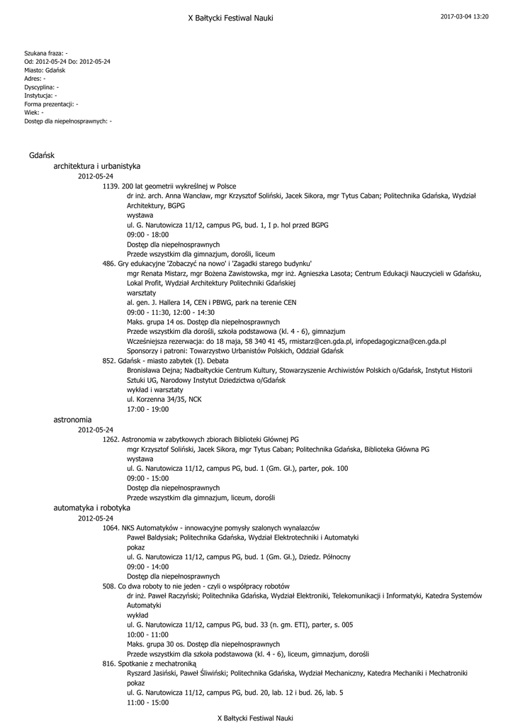 24 maja (czwartek) - Bałtycki Festiwal Nauki