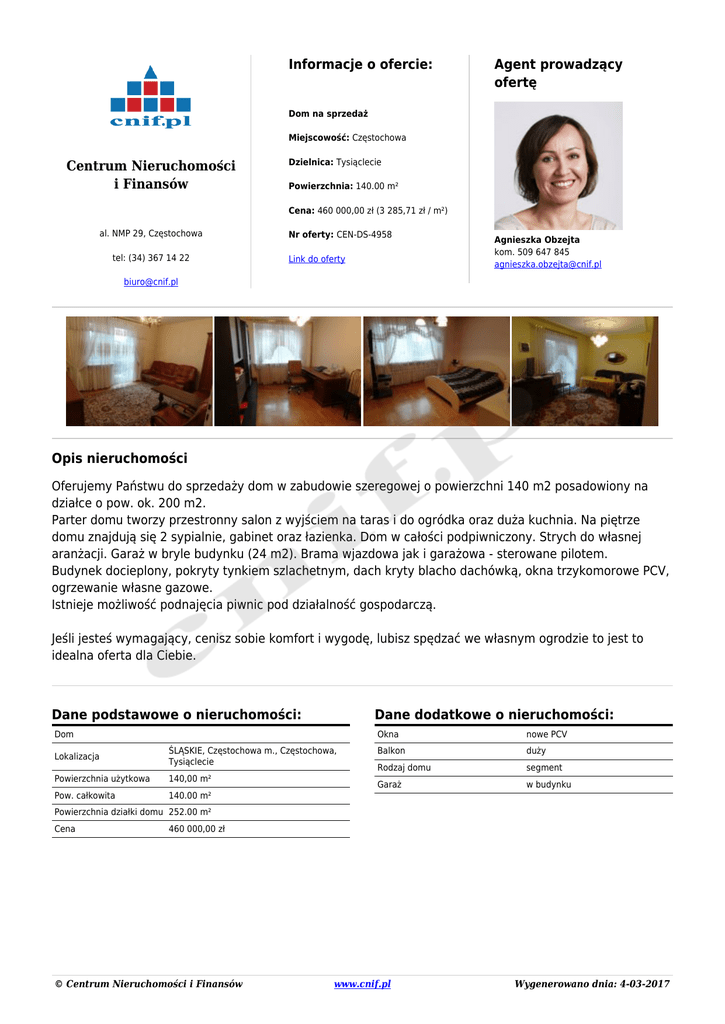Agent prowadzący ofertę Opis nieruchomości Dane podstawowe o