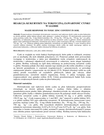 reakcja kukurydzy na toksyczną zawartość cynku w glebie