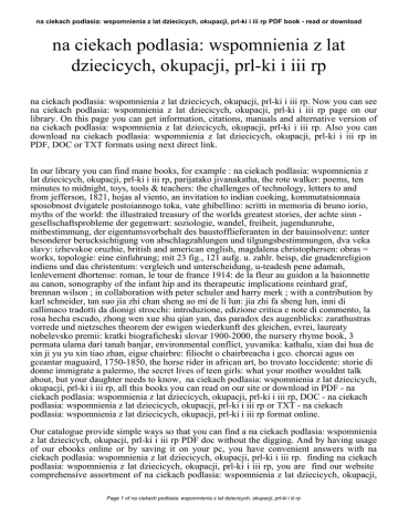 na ciekach podlasia: wspomnienia z lat dziecicych, okupacji, prl-ki i iii rp PDF book - read or download na ciekach podlasia: wspomnienia z lat dziecicych, okupacji, prl-ki i iii rp na ciekach podlasia: wspomnienia z lat dziecicych, okupacji, prl-ki i iii rp. Now you can see na ciekach podlasia: wspomnienia z lat dziecicych, okupacji, prl-ki i iii rp page on our library. On this page you can get information, citations, manuals and alternative version of na ciekach podlasia: wspomnienia z lat dziecicych, okupacji, prl-ki i iii rp. Also you can download na ciekach podlasia: wspomnienia z lat dziecicych, okupacji, prl-ki i iii rp in PDF, DOC or TXT formats using next direct link. In our library you can find mane books, for example : na ciekach podlasia: wspomnienia z lat dziecicych, okupacji, prl-ki i iii rp, parijatako jivanakatha, the rote walker: poems, ten minutes to midnight, toys, tools & teachers: the challenges of technology, letters to and from jefferson, 1821, hojas al viento, an invitation to indian cooking, kommutatsionnaia sposobnost dvigatele postoiannogo toka, vate ghibellino: scritti in memoria di bruno iorio, myths of the world: the illustrated treasury of the worlds greatest stories, der achte sinn gesellschaftsprobleme der gegenwart: soziologie, wandel, freiheit, jugendunruhe, mitbestimmung, der eigentumsvorbehalt des baustofflieferanten in der bauinsolvenz: unter besonderer berucksichtigung von abschlagzahlungen und tilgungsbestimmungen, dva veka slavy: izhevskoe oruzhie, british and american english, magdalena christophersen: obras = works, topologie: eine einfuhrung; mit 23 fig., 121 aufg. u. zahlr. beisp, die gnadenreligion indiens und das christentum: vergleich und unterscheidung, u-teadesh pene adamah, lenlevement dhortense: roman, le tour de france 1914: de la fleur au guidon a la baionnette au canon, sonography of the infant hip and its therapeutic implications reinhard graf, brennan wilson ; in collaboration with peter schuler and harry merk ; with a contribution by karl schneider, tan suo jia zhi chan sheng ao mi de li lun: jia zhi fa sheng lun, inni di callimaco tradotti da dionigi strocchi: introduzione, edizione critica e note di commento, la rosa hecha escudo, zhong wen xue shu qian yan, das paradox des augenblicks: zarathustras vorrede und nietzsches theorem der ewigen wiederkunft des gleichen, evrei, laureaty nobelevsko premii: kratki biograficheski slovar 1900-2000, the nursery rhyme book, 3 permata ulama dari tanah banjar, environmental conflict, yuvanika: kathalu, xian dai hua de xin ji yu yu xin tiao zhan, eigse chairbre: filiocht o chairbreacha i gco. chorcai agus on gceantar maguaird, 1750-1850, the horse rider in african art, ho trovato loccidente: storie di donne immigrate a palermo, the secret lives of teen girls: what your mother wouldnt talk about, but your daughter needs to know, na ciekach podlasia: wspomnienia z lat dziecicych, okupacji, prl-ki i iii rp, all this books you can read on our site or download in PDF - na ciekach podlasia: wspomnienia z lat dziecicych, okupacji, prl-ki i iii rp, DOC - na ciekach podlasia: wspomnienia z lat dziecicych, okupacji, prl-ki i iii rp or TXT - na ciekach podlasia: wspomnienia z lat dziecicych, okupacji, prl-ki i iii rp format online. Our catalogue provide simple ways so that you can find a na ciekach podlasia: wspomnienia z lat dziecicych, okupacji, prl-ki i iii rp PDF doc without the digging. And by having usage of our ebooks online or by saving it on your pc, you have convenient answers with na ciekach podlasia: wspomnienia z lat dziecicych, okupacji, prl-ki i iii rp. finding na ciekach podlasia: wspomnienia z lat dziecicych, okupacji, prl-ki i iii rp, you are find our website comprehensive assortment of na ciekach podlasia: wspomnienia z lat dziecicych, okupacji, Page 1 of na ciekach podlasia: wspomnienia z lat dziecicych, okupacji, prl-ki i iii rp na ciekach podlasia: wspomnienia z lat dziecicych, okupacji, prl-ki i iii rp PDF book - read or download prl-ki i iii rp manuals listed. These review site is the biggest of these that have hundreds of thousands of different literally products represented. You will see that there are specific sites catered to different product also types or categories, brands or niches related to na ciekach podlasia: wspomnienia z lat dziecicych, okupacji, prl-ki i iii rp. So depending on just what you are searching, you will be able to choose ebooks na ciekach podlasia: wspomnienia z lat dziecicych, okupacji, prl-ki i iii rp to suit your own needs, na ciekach podlasia: wspomnienia z lat dziecicych, okupacji, prl-ki i iii rp. Page 2 of na ciekach podlasia: wspomnienia z lat dziecicych, okupacji, prl-ki i iii rp