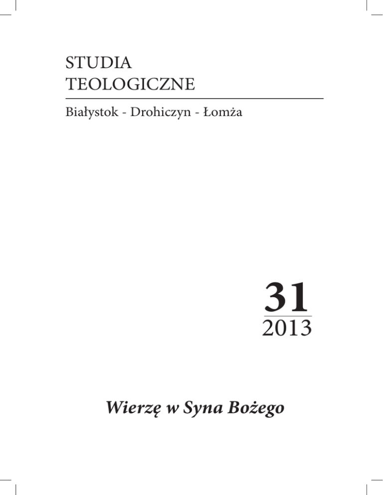 Tom 31 (2013) - STUDIA TEOLOGICZNE