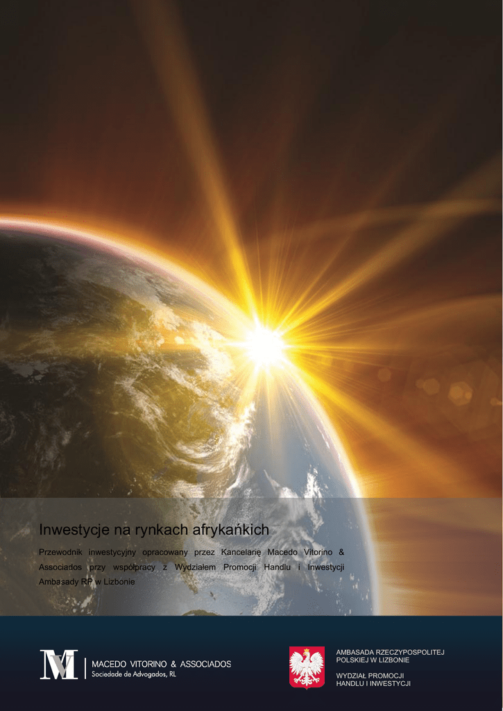 . Inwestycje na rynkach afrykańkich Przewodnik inwestycyjny opracowany przez Kancelarię Macedo Vitorino & Associados przy współpracy z Wydziałem Promocji Handlu i Inwestycji Ambasady RP w Lizbonie AMBASADA RZECZYPOSPOLITEJ POLSKIEJ W LIZBONIE WYDZIAŁ PROMOCJI HANDLU I INWESTYCJI Kancelaria Prawna Macedo Vitorino & Associados powstała w 1996 roku i specjalizuje się w doradztwie prawnym dla klientów krajowych i zagranicznych w poszczególnych sektorach działalności, m.in. w sektorze finansowym, telekomunikacyjnym i energetycznym a także w inwestycjach w Afryce. Od momentu powstania Macedo Vitorino & Associados ściśle współpracuje z najbardziej prestiżowymi kancelariami prawnymi w Europie i Stanach Zjednoczonych, co pozwala nam doradzać w operacjach międzynarodowych szybko, profesjonalnie i efektywnie. Kancelaria Macedo Vitorino & Associados, cytowana jest przez jedenaście z osiemnastu międzynarodowych portali, zajmujących się rankingami firm świadczących usługi prawne. Nasza skuteczność podkreślają m.in: IFLR 1000 "Project Finance”, “Corporate Finance" oraz "M&A”. W celu uzyskania szerszych informacji o działalności Kancelarii Macedo Vitorino & Associados prosimy odwiedzić naszą stronę internetową www.macedovitorino.com lub skontaktować się z nami telefonicznie lub e-mailowo. Tel: (351) 21 324 1900 - Fax: (351) 21 324 1929 E-mail:[email protected] Wydział Promocji Handlu i Inwestycji Ambasady RP w Lizbonie jest placówką Ministra Gospodarki, działająca w ramach polskiej placówki dyplomatycznej w Portugalii, której celem jest wspieranie polskich firm, w tym w szczególności małych i średnich przedsiębiorstw w procesie internacjonalizacji na rynku portugalskim, a także udzielenie pomocy firmom portugalskim, zainteresowanym importem polskich towarów i usług lub inwestycjami w Polsce. Zachęcamy do współpracy z nami, w tym celu prosimy o kontakt telefoniczny na numer (00351) 213013327 lub mailowy na adres [email protected], jak również zachęcamy do odwiedzenia naszej strony internetowej www.lisbon.trade.gov.pl. Informacje zawarte poniżej nie powinny być traktowane jako profesjonalne doradztwo. Jeżeli są Państwo zainteresowani uzyskaniem porady prawnej w podobnych sprawach, prosimy o kontakt z prawnikami Kancelarii, z których usług zwykle Państwo korzystają. Jeśli są Państwo Klientem Macedo Vitorino & Associados, prosimy skontaktować się z nami, dzwoniąc lub pisząc pod numery zamieszczone powyżej. Spis treści 1. Wstęp............................................................................................................................... 1 2. Angola.............................................................................................................................. 1 2.1. Gospodarka................................................................................................................... 1 2.2. Inwestowanie ................................................................................................................ 1 2.3. Tam warto inwestować .................................................................................................. 2 2.4. Podsumowanie .............................................................................................................. 3 3. Mozambik......................................................................................................................... 3 3.1. Gospodarka................................................................................................................... 4 3.2. Tam warto inwestować .................................................................................................. 4 3.3. Podsumowanie .............................................................................................................. 5 Inwestycja w Afrykę 1. Wstęp Bez wątpienia jednym z najbardziej atrakcyjnych miejsc na inweystycyjnej mapie globu jest dzisiaj Afryka. Ten nie do końca odkryty przez inwestorów „zakątek” z każdym rokiem przyciąga coraz to większą ich rzeszę. Ogromna dynamika rozwoju rynku, bogactwo surowców naturalnych oraz środowisko sprzyjające inwestycjom, zachecają zagranicznych inwestorów. W których zatem rejonach kontynentu najlepiej inwestować? Jaka branża i gdzie przyniesie nam największy zysk? Poniżej przedstawione zostaną afrykańskie państwa portugalskojęzyczne, odznaczające się największymi możliwościami inwestycyjnymi. 2. Angola Republika Angoli to kraj położony w południowo-zachodniej części kontynentu afrykańskiego. Od północy graniczy z Demokratyczną Republiką Konga, od wschodu z Zambią, a od południa z Namibią. Zachodnią jej część oblewają natomiast wody Oceanu Atlantyckiego. Długość linii brzegowej kraju liczy ponad 1 600 km. W 2011 roku Angolę, oficjalnie zamieszkiwało ponad 19 mln obywateli, jednak liczba ta może być większa, gdyż część mieszkańców nie jest ujęta w żadnym rejestrze. Do 1975 kraj był pod kontrolą Portugalii, najpierw jako kolonia, potem jako terytorium zamorskie. Głównym bogactwem kraju bezdyskusyjnie są złoża naturalne, przede wszystkim w ropa naftowa, gaz, złoto, miedź i diamenty. Występują tu także rudy żelaza, fosforyty oraz uran. 2.1. Gospodarka Panujący od kilku lat światowy kryzys gospodarczy dotkliwie doświadczył wiele krajów, między innymi byłego angolskiego ekskolonizatora - Portugalię. Angola natomiast z roku na rok poprawia swoje wyniki finansowe i cieszy się coraz większą ilością zagranicznych inwestycji. W 2012 roku, wzrost PKB tego kraju wyniósł 5,8 %, co daje mu pozycję jednej z najszybciej rozwijających się gospodarek w Afryce. Prognoza na najbliższe lata jest dosyć optymistyczna i spekuluje się wzrost na poziomie 7%. Produkcja ropy naftowej i jej przetworów generuje około 85% PKB Angoli, natomiast kolejne 5% dochodu pochodzi z wydobycia diamentów. Zasoby oleju napędowe
