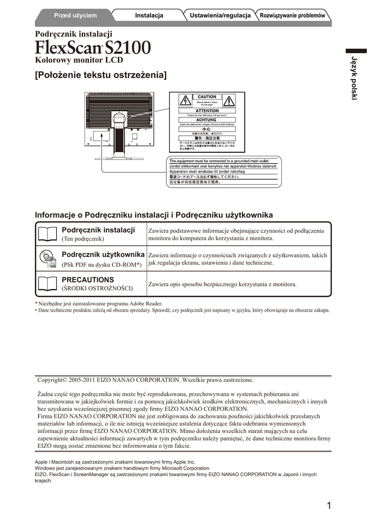 FlexScan S2100 Podręcznik instalacji