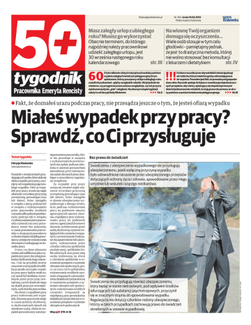 [email protected] Nr 264, środa 19.03.2014 Polska Gazeta Krakowska Masz zaległy urlop z ubiegłego roku? Musisz go wykorzystać NawiosnęTwójorganizm domagasięoczyszczenia... Obecnie terminem, do którego najpóźniej należy pracownikowi udzielić zaległego urlopu, jest 30 września następnego roku kalendarzowego str. III Wiele osób stosuje w tym celu głodówki – pamiętajmy jednak, że jest to drastyczna metoda, której nie wolno stosować bez konsultacji z lekarzem i dietetykiem str. IV Otylemilionówzłotychwięcejkosztowałabypaństwo wypłatazaległychświadczeńpielęgnacyjnychtym opiekunom,którzypocząwszyodlipcaubiegłegoroku zostaliichpozbawieni–gdybyuwzględnićodsetki.Wciążjednaknie wiadomo,czyprzygotowywanaustawauwzględnije,czyteżprzyzna opiekunomjedynie„gołe”zaległości.Naobecnymetapielegislacji zależytooddecyzjiRadyMinistrów bbb Str.II Dobiurarzecznikaprawobywatelskichdocierająskargi odrodziców,którymniektóregminyodmawiająprawa dowsparcia.Powodemjestfakt,żeprowadząonigospodarstworolne.RzecznikapelujedoSejmuonowelizacjęniejednoznacznychprzepisów,abyrolnicyopiekującysięniepełnosprawnymi dziećmijednoznaczniewiedzieli,żemająprawodopomocyzestronypaństwawpostaciświadczeniapielęgnacyjnego bbb Str.III 60 !!! A Fakt, że doznałeś urazu podczas pracy, nie przesądza jeszcze o tym, że jesteś ofiarą wypadku Miałeśwypadekprzypracy? Sprawdź,coCiprzysługuje Patrycja Wacławska [email protected] Poradnik o świadczeniach przysługującychosobie,którastałasię ofiarąwypadkuprzypracy,zacznijmy od wyjaśnienia pojęcia takiego wypadku. Otóż za wypadek przy pracy uważa się nagłe zdarzenie wywołane przyczyną zewnętrzną, powodujące uraz lub śmierć, które nastąpiło w związku z pracą: podczas lub w związku z wykonywaniem przez pracownika zwykłych czynnościalbopoleceńprzełożonych; podczas lub w związku zwykonywaniemprzezpracownika czynności na rzecz pracodawcy nawet bez polecenia; w czasie pozostawania pracownika w dyspozycji pracodawcy wdrodzemiędzysiedzibąpracodawcyamiejscemwykonywania obowiązkuwynikającegozestosunku pracy. O tym, czy dane zdarzenie można zakwalifikować jako wypadek przy pracy decydują konkretne okoliczności tego zdarzenia. I tak na przykład istotne znaczenie w przypadku kwalifikacji zawału serca jako wypadku przy pracy będzie miało to, czy zawał był skutkiem wywołanym przez przyczynę zewnętrzną, czy też doszło do niego na skutek przyczyn wewnętrznych,czylichorobypracownika. Na równi z wypadkiem przy pracy traktowany jest wypadek, któremu pracownik uległ: w czasie podróży służbowej, w okolicznościach innych niż określone wyżej, chyba że wypadek spowodowany został po- stępowaniem pracownika, które nie pozostaje w związku z wykonywaniem powierzonych mu zadań; podczas szkolenia w zakresie powszechnej samoobrony; przy wykonywaniu zadań zleconych przez działające u pracodawcy organizacje związkowe. Za wypadek przy pracy uważa się również nagłe zdarzenie wywołane przyczyną zewnętrzną powodujące uraz lub śmierć, które nastąpiło w okresie ubezpieczenia wypadkowego z danego tytułu, m.in. podczas: wykonywania pracy na podstawie umowy agencyjnej lub umowy zlecenia; współpracy przy wykonywaniu pracy na podstawie umowy agencyjnej lub umowy zlecenia; wykonywania przez osobę duchowną czynności religijnych lub czynności związanych z powierzonymi funkcjami duszpasterskimi lub zakonnymi; wykonywania przez członka rolniczej spółdzielni produkcyjnej, spółdzielni kółek rolniczych oraz przez inną osobę traktowaną na równi z członkiem spółdzielni w rozumieniu przepisów o systemie ubezpieczeń społecznych, pracy na rzecz tych spółdzielni; wykonywania zwykłych czynności związanych z prowadzeniem działalności pozarolniczej w rozumieniu przepisów o systemie ubezpieczeń społecznych; wykonywania zwykłych czynności związanych ze współpracą przy prowadzeniu działalności pozarolniczej w rozumieniu przepisów o systemie ubezpieczeń społecznych. Więcej a STR. II–III Bez prawa do świadczeń Świadczenia z ubezpieczenia wypadkowego nie przysługują ubezpieczonemu, jeżeli wyłączną przyczyną wypadku było udowodnione naruszenie przez ubezpieczonego przepisów dotyczących ochrony życia i zdrowia, spowodowane przez niego umyślnie lub wskutek rażącego niedbalstwa. Świadczenia nie przysługują również ubezpieczonemu, który będąc w stanie nietrzeźwym, pod wpływem środków odurzających lub substancji psychotropowych, przyczynił się w znacznym stopniu do spowodowania wypadku. Regulacja ta nie dotyczy członków rodziny ubezpieczonego, którzy w takich przypadkach zachowują prawo do świadczeń określonych w ustawie wypadkowej. INFOGRAFIKA: TOMASZ FRĄCZEK, FOT. 123RF Temat tygodnia II • Masz II • Ludzie prawo FOT. ADAM WONJAR (2) Po redakcyjnym dyżurze – 3 Barbara Balon, zastępca dyrektora ZUS w Krakowie Polska Gazeta Krakowska Środa, 19 marca 2014 www.gk.pl Małgorzata Zyguła, kierownik Wydziału Specjaliści z Krakowskiego Oddziału ZUS odpowiadają na pytania Czytelników a Mamprzyznanąna stałerentęztytułuchorobyzawodowejiodlutego2014r.jestemnaemeryturze.ZUSwypłacamicałąemeryturę ipołowęrenty.Czywaloryzacjaobejmieobydwaświadczenia? Przy okazji każdej waloryzacji przeliczane są wszystkie świadczenia. Jeżeli danej osobie przysługuje emerytura i renta z tytułu wypadku przy pracy lub choroby zawodowej, to waloryzacji podlegają obydwa świadczenia. a Pobieramrentęsocjalną.CzymnieteżdotyczyobowiązekinformowaniaZUSoosiąganychprzychodach? Tak. Renta socjalna jest świadczeniem przysługującym osobom, które stały się całkowicie niezdolne do pracy przed ukończeniem 18. roku życia albo w trakcie nauki przed ukończeniem 25 lat. Jest wypłacana w stałej wysokości i po waloryzacji wynosi 709,34 zł (84 proc. kwoty najniższej renty z tytułu całkowitej niezdolności do pracy). Co pra