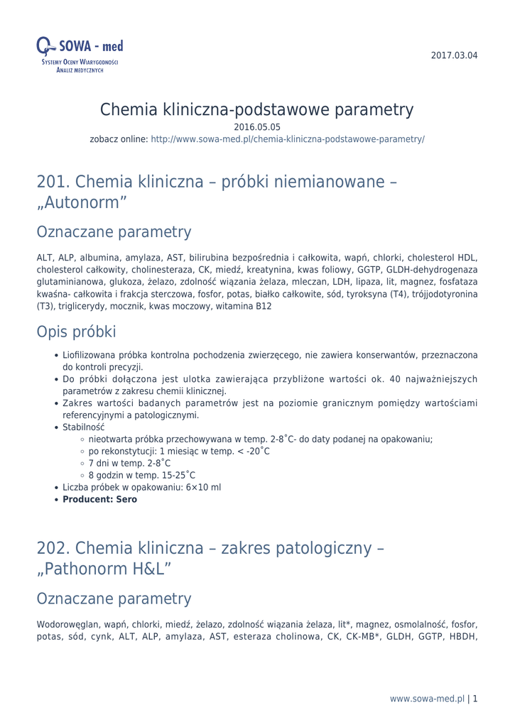 Chemia kliniczna-podstawowe parametry 201 - SOWA-med