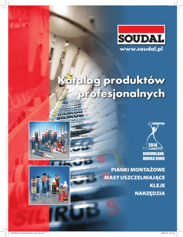 www.soudal.pl Katalog produktów profesjonalnych CHAMPION 2014 PIANKI MONTAŻOWE MASY USZCZELNIAJĄCE KLEJE NARZĘDZIA Katalog produktów profesjonalnych | 1 ONTW916_ProductFolderPro_2014_PL.indd 1 02/07/14 10:44 Pianki poliuretanowe Pianki jednoskładnikowe SOUDAFOAM CLASSIC Pianka pistoletowa Piana montażowo-uszczelniająca o doskonalej przyczepności do większości materiałów budowlanych, w tym PCV, drewna i metali. Wydajność do 45 litrów po rozprężeniu. Wysoka izolacyjność termiczno - akustyczna. Opatentowany bagnetowy system Click&Fix umożliwia błyskawiczne połączenie puszki z pistoletem po przekręceniu o 1/4 obrotu, profesjonalny zawór (certyfikat TÜV-SÜD) zapewnia precyzyjne dozowanie i jest odporny na blokowanie. Wynaleziona przez Soudal formuła „zimowa” umożliwia pracę w temperaturach ujemnych (do -10°C). Aerozol Art. nr: 114091 Art. nr: 107346 Art. nr: 114092 Art. nr: 108820 gun gun (-10°C) click click (-10°C) 5411183011922 5411183027596 5411183035485 5411183037076 750ml 750ml 750ml 750ml 12/Karton 12/Karton 12/Karton 12/Karton Aerozol Art. nr: 114142 Art. nr: 115140 Art. nr: 114141 Art. nr: 115249 gun gun (-10°C) click click (-10°C) 5411183059580 5411183069008 5411183059597 5411183069312 870ml 870ml 870ml 870ml 12/Karton 12/Karton 12/Karton 12/Karton Aerozol Art. nr: 105157 Art. nr: 112583 Art. nr: 108999 Art. nr: 115208 gun gun (-10°C) click click (-10°C) 5411183034440 5411183048522 5411183037250 5411183069107 750ml 750ml 750ml 750ml 12/Karton 12/Karton 12/Karton 12/Karton Aerozol Art. nr: 118685 Art. nr: 118318 gun click 5411183087620 750ml 5411183086487 750ml 12/Karton 12/Karton SOUDAFOAM MAXI Pianka wysokowydajna Piana montażowo-uszczelniająca o doskonałej przyczepności do większości materiałów budowlanych, w tym PCV, drewna i metali. Najwyższa wydajność - do 65 litrów po rozprężeniu. Wysoka izolacyjność termiczno - akustyczna. Opatentowany bagnetowy system Click&Fix umożliwia błyskawiczne połączenie puszki z pistoletem po przekręceniu o 1/4 obrotu, profesjonalny zawór (certyfikat TÜV-SÜD) zapewnia precyzyjne dozowanie i jest odporny na blokowanie. Wynaleziona przez Soudal formuła „zimowa” umożliwia pracę w temperaturach ujemnych (do -10°C). SOUDAFOAM LOW EXPANSION Pianka niskorozprężna Piana montażowo-uszczelniająca o niskiej rozprężalności i doskonałej przyczepności do większości materiałów budowlanych, w tym PCV, drewna i metali. Przeznaczona do uszczelnień przy montażu delikatnych profili z PCV i aluminium. Najwyższa izolacyjność termiczna i akustyczna (RSTW -58 dB potwierdzona badaniami i.f.t. Rosenheim). Opatentowany bagnetowy system Click&Fix umożliwia błyskawiczne połączenie puszki z pistoletem po przekręceniu o 1/4 obrotu, profesjonalny zawór (certyfikat TÜV-SÜD) zapewnia precyzyjne dozowanie i jest odporny na blokowanie. Wynaleziona przez Soudal formuła „zimowa” umożliwia pracę w temperaturach ujemnych (do -10°C). FLEXIFOAM Pianka super elastyczna Niskorozprężna super elastyczna piana montażowo-uszczelniająca nowej generacji o najwyższej izolacyjności termiczno-akustycznej (RSTW - 60 dB w badaniach i.f.t. Rosenheim). Przeznaczona do uszczelnień przy montażu stolarki okiennej i drzwiowej o dużych gabarytach narażonych na wibracje lub znaczne zmiany wymiarów, np. profili alu. Charakteryzuje się krótkim czasem utwardzania i najwyższą elastycznością – wypełnienie powraca do pierwotnych rozmiarów po rozciągnięciu o 45% lub ściśnięciu aż o 75%. 2 | Katalog produktów profesjonalnych ONTW916_ProductFolderPro_2014_PL.indd 2 02/07/14 10:44 Pianki poliuretanowe SOUDAFOAM EX-TRA 66% CLICK Pianka wysokowydajna Piana montażowo-uszczelniająca o innowacyjnej wysokowydajnej formule i o niskiej rozprężalności. Doskonała przyczepność do większości materiałów budowlanych, w tym PCV, drewna i metali. Dzięki niewielkim wymiarom doskonale nadaje się do wszelkich uszczelnień przy pracach instalatorskich, elektrycznych, hydraulicznych itp. Dostępna w kolorze szarym. Opatentowany bagnetowy system Click&Fix umożliwia błyskawiczne połączenie puszki z pistoletem po przekręceniu o 1/4 obrotu, profesjonalny zawór (certyfikat TÜV-SÜD) zapewnia precyzyjne dozowanie i jest odporny na blokowanie. W ofercie również ekonomiczny zestaw EX-TRA 66% BOX zawierający 5 puszek pianki, pistolet z gniazdem Click i płyn czyszczący do pianki. Aerozol Art. nr: 116520 Art. nr: 116306 click box 5411183077454 500ml 5411183077430 12/Karton 1/Karton Aerozol Art. nr: 119963 manual 5411183091832 750ml 12/Karton Aerozol Art. nr: 113839 manual 5411183057616 500ml 6/Karton 5411183034518 400ml 12/Karton BRUNNENSCHAUM Pianka do kręgów Piana montażowo-uszczelniająca o podwyższonej odporności na działanie związków organicznych i doskonałej przyczepności do większości materiałów budowlanych. Polecana do uszczelniania połączeń kręgów kanalizacyjnych, studzienek komunikacyjnych, itp. SOUDAFOAM SMX® Pianka bez izocyjanianów (MDI) Pierwsza na świecie piana montażowo-uszczelniająca w aerozolu nie zawierająca izocyjanianów (0% zawartości MDI) o doskonalej przyczepności do cegły, betonu, tynku, kamienia, drewna, PCV, ALU, powierzchni szkliwionych, itp. Charakteryzuje się doskonałą izolacyjnością termiczną i akustyczną (duża gęstość i regularność struktury). Klasa palności B2. Pianki dwuskładnikowe SOUDAFOAM 2K Pianka dwuskładnikowa Dwuskładnikowa szybko utwardzalna pianka montażowa o dużej gęstości i doskonałej przyczepności do większości materiałów budowlanych. Zapewnia wysoką izolacyjność akustyczną i termiczną. Utwardza się całkowicie w ciągu 30 minut, w wyniku reakcji chemicznej. Przeznaczona do montażu ościeżnic drzwi wewnętrznych - bez łączników mechanicznych i aplikacji w miejscach z ograniczonym dostępem wilgoci z powietrza lub podłoża. Aerozol Art. nr: 105234 manual Katalog produktów profesjonaln