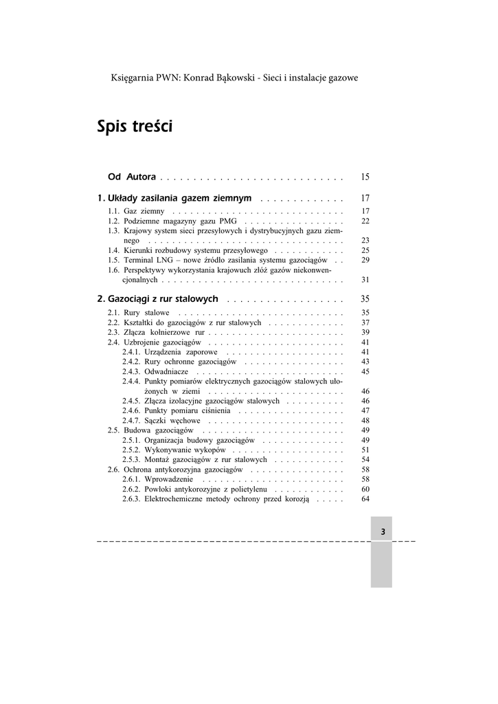Księgarnia PWN: Konrad Bąkowski - Sieci i instalacje gazowe Spis treści Od Autora . . . . . . . . . . . . . . . . . . . . . . . . . . . . 15 1. Układy zasilania gazem ziemnym . . . . . . . . . . . . . 17 1.1. Gaz ziemny . . . . . . . . . . . . . . . . . . . . . . . . . . . . . 1.2. Podziemne magazyny gazu PMG . . . . . . . . . . . . . . . . . 1.3. Krajowy system sieci przesyłowych i dystrybucyjnych gazu ziemnego . . . . . . . . . . . . . . . . . . . . . . . . . . . . . . . . . 1.4. Kierunki rozbudowy systemu przesyłowego . . . . . . . . . . . . 1.5. Terminal LNG – nowe źródło zasilania systemu gazociągów . . 1.6. Perspektywy wykorzystania krajowuch złóż gazów niekonwencjonalnych . . . . . . . . . . . . . . . . . . . . . . . . . . . . . . 17 22 2. Gazociągi z rur stalowych . . . . . . . . . . . . . . . . . . 2.1. 2.2. 2.3. 2.4. Rury stalowe . . . . . . . . . . . . . . . . . . . . . . . . . . . . Kształtki do gazociągów z rur stalowych . . . . . . . . . . . . . Złącza kołnierzowe rur . . . . . . . . . . . . . . . . . . . . . . . Uzbrojenie gazociągów . . . . . . . . . . . . . . . . . . . . . . . 2.4.1. Urządzenia zaporowe . . . . . . . . . . . . . . . . . . . . 2.4.2. Rury ochronne gazociągów . . . . . . . . . . . . . . . . . 2.4.3. Odwadniacze . . . . . . . . . . . . . . . . . . . . . . . . . 2.4.4. Punkty pomiarów elektrycznych gazociągów stalowych ułożonych w ziemi . . . . . . . . . . . . . . . . . . . . . . . 2.4.5. Złącza izolacyjne gazociągów stalowych . . . . . . . . . . 2.4.6. Punkty pomiaru ciśnienia . . . . . . . . . . . . . . . . . . 2.4.7. Sączki węchowe . . . . . . . . . . . . . . . . . . . . . . . 2.5. Budowa gazociągów . . . . . . . . . . . . . . . . . . . . . . . . 2.5.1. Organizacja budowy gazociągów . . . . . . . . . . . . . . 2.5.2. Wykonywanie wykopów . . . . . . . . . . . . . . . . . . . 2.5.3. Montaż gazociągów z rur stalowych . . . . . . . . . . . . 2.6. Ochrona antykorozyjna gazociągów . . . . . . . . . . . . . . . . 2.6.1. Wprowadzenie . . . . . . . . . . . . . . . . . . . . . . . . 2.6.2. Powłoki antykorozyjne z polietylenu . . . . . . . . . . . . 2.6.3. Elektrochemiczne metody ochrony przed korozją . . . . . 23 25 29 31 35 35 37 39 41 41 43 45 46 46 47 48 49 49 51 54 58 58 60 64 3 Spis treści 2.7. Instalowanie armatury zaporowej . . . . . . . . . . . . . . . . . 2.8. Podziemne przekroczenia przeszkód terenowych przez gazociągi 2.9. Uruchamianie gazociągów . . . . . . . . . . . . . . . . . . . . . 2.9.1. Wprowadzenie . . . . . . . . . . . . . . . . . . . . . . . . 2.9.2. Próby gazociągów . . . . . . . . . . . . . . . . . . . . . . 2.9.3. Uruchamianie gazociągów . . . . . . . . . . . . . . . . . . 2.9.4. Bezpieczeństwo i higiena pracy przy budowie i eksploatacji sieci gazowych . . . . . . . . . . . . . . . . . . . . . . . . 66 68 70 70 70 75 3. Gazociągi z rur polietylenowych . . . . . . . . . . . . . 78 3.1. Rury polietylenowe jednowartswowe . . . . . . . . . . . . . . . 3.2. Kształtki do gazociągów z rur polietylenowych . . . . . . . . . . 3.3. Wykonywanie gazociągów z rur polietylenowych jednowarstwowych . . . . . . . . . . . . . . . . . . . . . . . . . . . . . . . . . 3.3.1. Transport i magazynowanie . . . . . . . . . . . . . . . . . 3.3.2. Wykopy dla gazociągów polietylenowych jednowarstwowych . . . . . . . . . . . . . . . . . . . . . . . . . . . . . . 3.3.3. Technologia łączenia rur i kształtek . . . . . . . . . . . . 3.3.4. Układanie rur w wykopach . . . . . . . . . . . . . . . . . 3.3.5. Układanie gazociągów polietylenowych metodą bezwykopową 3.4. Wykonywanie odgałęzień od gazociągów z rur z PE . . . . . . . 3.5. Wykonywanie skrzyżowań gazociągów z rur polietylenowych jednowarstwowych z przeszkodami terenowymi i elementami uzbrojenia podziemnego . . . . . . . . . . . . . . . . . . . . . . . . . . 3.6. Renowacja gazociągów z zastosowaniem rur polietylenowych typu Compact Pipe . . . . . . . . . . . . . . . . . . . . . . . . . . . . 3.7. Rury polietylenowe warstwowe . . . . . . . . . . . . . . . . . . 78 83 104 107 4. Gazomierze i stacje pomiarowe . . . . . . . . . . . . . . 113 4.1. 4.2. 4.3. 4.4. 4.5. 4.6. 4.7. Wprowadzenie . . . . . . . . . . . . . . . . . . . . . . . . . . . Gazomierze miechowe . . . . . . . . . . . . . . . . . . . . . . . Gazomierze rotorowe . . . . . . . . . . . . . . . . . . . . . . . . Gazomierze turbinowe . . . . . . . . . . . . . . . . . . . . . . . Przepływomierze wirowe typu Vortex . . . . . . . . . . . . . . . Przepływomierze zwężkowe . . . . . . . . . . . . . . . . . . . . Elektroniczne przesyłanie danych i przeliczanie objętości gazu na warunki normalne . . . . . . . . . . . . . . . . . . . . . . . . . . 4.7.1. Nadajniki elektroniczne . . . . . . . . . . . . . . . . . . . 4.7.2. Korektory i przeliczniki objętości gazu na warunki normalne 4.8. Systemy zdalnego odczytu gazomierzy mieszkaniowych . . . . . 4.9. Stacje pomiarowe paliw gazowych . . . . . . . . . . . . . . . . 4.9.1. Wprowadzenie . . . . . . . . . . . . . . . . . . . . . . . . 4.9.2. Układy pomiarowe z gazomierzem rotorowym . . . . . . . 4.9.3. Układy pomiarowe z gazomierzem turbinowym . . . . . . 4 77 86 86 87 87 95 97 98 100 113 115 120 126 133 134 137 137 139 143 146 146 149 150 Spis treści 5. Reduktory ciśnienia . . . . . . . . . . . . . . . . . . . . . 5.1. 5.2. 5.3. 5.4. 153 Wprowadzenie . . . . . . . . . . . . . . . . . . . . . . . . . . . Elementy reduktorów . . . . . . . . . . . . . . . . . . . . . . . . Obliczanie wybranych parametrów technicznych reduktorów . . . Zasady doboru reduktorów ciśnienia . . . . . . . . . . . . . . . . 5.4.1. Dobór reduktorów na podstawie wykresów . . . . . . . . . 5.4.2. Dobór reduktorów na podstawie współczynników przepływu 5.5. Charakterystyka wybranych reduktorów . . . . . . . . . . . . . . 5.5.1. Jednostopniowe reduktory bezpośredniego działania . . . . 5.5.2. Zasady obsługi reduktorów bezpośredniego dzi