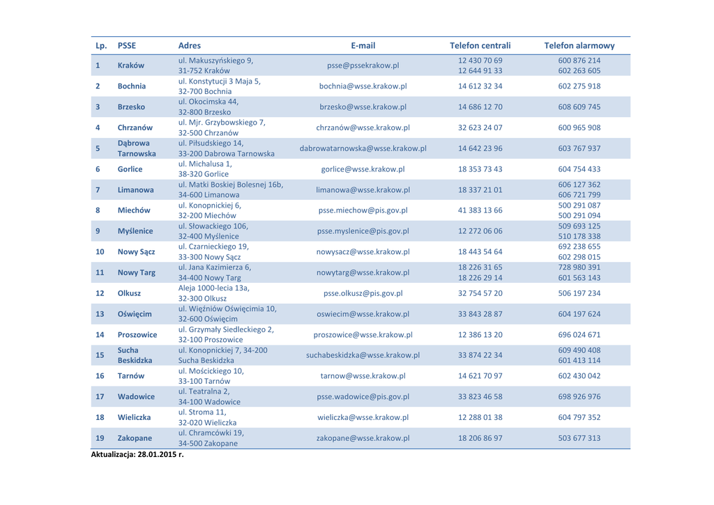 Lp. PSSE Adres E-mail Telefon centrali Telefon alarmowy