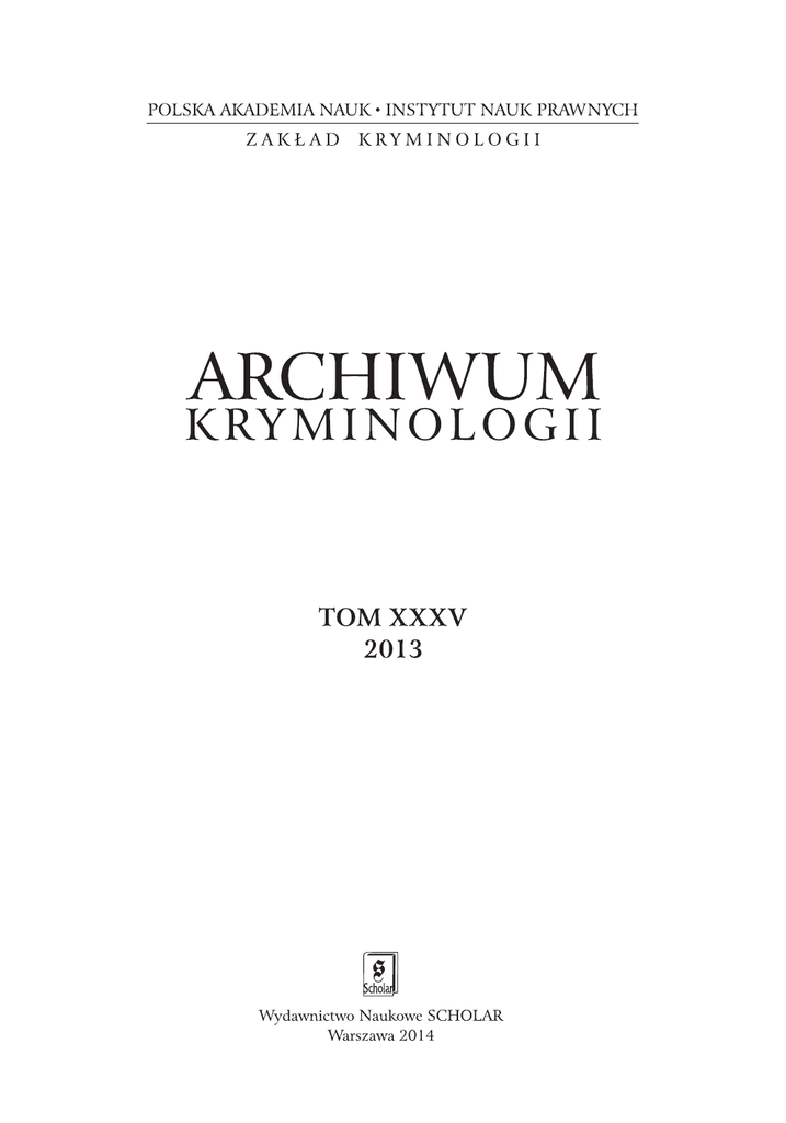 KOMITET REDAKCYJNY Beata Gruszczyńska (redaktor statystyczny), Witold Klaus (sekretarz redakcji), Anna Kossowska, Krzysztof Krajewski, Barbara Kunicka-Michalska, Zofia Ostrihanska (przewodnicząca Komitetu Redakcyjnego), Irena Rzeplińska (redaktor naczelna), Andrzej Rzepliński, Andrzej Siemaszko, Grażyna Szczygieł, Leon Tyszkiewicz, Teodor Szymanowski, Janina Wojciechowska, Dobrochna Wójcik ZAGRANICZNI CZŁONKOWIE KOMITETU REDAKCYJNEGO Marcelo F. Aebi (University of Lausanne), Ivo Aertsen (Catholic University Leuven), Aleksandras Dobryninas (Vilnius University), Frieder Dünkel (University of Greifswald), Uberto Gatti (University of Genoa), Yakov Gilinsky (Russian Academy of Sciences), Helmut Kury (University of Freiburg), Miklós Lévay (Eötvös Loránd University), Gorazd Meško (University of Maribor), Cristina Rechea-Alberola (University of Castilla-La Mancha), Joanna Shapland (University of Sheffield), Dina Siegel (Utrecht University), Alenka Šelih (University of Ljubljana), Helena Válková (Charles University in Prague) Zewnętrzni recenzenci: Janina Błachut, Teodor Bulenda, Katarzyna Laskowska, Zbigniew Lasocik, Maria Niełaczna, Emil Pływaczewski, Paweł Waszkiewicz Copyright by: Instytut Nauk Prawnych Polskiej Akademii Nauk, Warszawa 2014 Publikacja dofinansowana przez Instytut Nauk Prawnych PAN ze środków Ministerstwa Nauki i Szkolnictwa Wyższego. Wydawca: Zakład Kryminologii Instytutu Nauk Prawnych Polskiej Akademii Nauk 00-330 Warszawa, ul. Nowy Świat 72 e-mail: [email protected] PL ISSN: 0066-6890 Wersją referencyjną niniejszego czasopisma jest wersja papierowa. Procedura recenzowania artykułów oraz lista recenzentów dostępne są na stronie internetowej „Archiwum Kryminologii”: http://www.inp.pan.pl/index.php?a=wydawnictwa&bb=2 Wydawnictwo Naukowe Scholar sp. z o.o., ul. Krakowskie Przedmieście 62, 00-322 Warszawa tel./fax 22 828 95 63, 22 828 93 91, 22 826 59 21 e-mail: [email protected]; www.scholar.com.pl Druk i oprawa: BookPress.eu, Olsztyn Nakład 185 egz. SPIS TREŚCI dr Paweł Ostaszewski Instytut Wymiaru Sprawiedliwości JAK BADAĆ LĘK PRZED PRZESTĘPCZOŚCIĄ? ............................................................. 5 dr Stanisław Mordwa Uniwersytet Łódzki ZASTOSOWANIE AUTOKORELACJI PRZESTRZENNEJ W BADANIACH PRZESTĘPCZOŚCI ................................................................................................................... 61 dr hab., prof. INP PAN Irena Rzeplińska Instytut Nauk Prawnych PAN KARIERY KRYMINALNE NIELETNICH SPRAWCÓW PRZESTĘPSTW .................. 79 mgr Magdalena Grzyb Uniwersytet Jagielloński dr Ewa Habzda-Siwek Uniwersytet Jagielloński PŁEĆ A PRZESTĘPCZOŚĆ. O PROBLEMIE DYSPROPORCJI PŁCI WŚRÓD SPRAWCÓW PRZESTĘPSTW Z UŻYCIEM PRZEMOCY ............................. 95 dr Agnieszka Gutkowska Uniwersytet Warszawski KULTUROWA PRZEMOC ZE WZGLĘDU NA PŁEĆ. PRZYPADEK ZABÓJSTW NA TLE HONORU ..................................................................................................................... 137 dr Maryla Koss-Goryszewska Instytut Spraw Publicznych WIZERUNEK OFIARY HANDLU KOBIETAMI W KRAJOWYM ORZECZNICTWIE KARNYM NA PODSTAWIE ANALIZY WYROKÓW W SPRAWACH O HANDEL LUDŹMI W LATACH 1997-2009 ........................................................................................... 161 4 SPIS TREŚCI dr Edyta Drzazga Uniwersytet Jagielloński O KONTROLI CHULIGAŃSTWA FUTBOLOWEGO W POLSCE ZE SZCZEGÓLNYM UWZGLĘDNIENIEM SYTUACYJNEJ PREWENCJI UWAG KILKA ............................................................................................................................. 193 dr Konrad Buczkowski Instytut Nauk Prawnych PAN, Instytut Wymiaru Sprawiedliwości OSZUSTWO ASEKURACYJNE (ART. 298 K.K.) W PRAKTYCE WYMIARU SPRAWIEDLIWOŚCI ............................................................................................................... 213 dr Paweł Bachmat Instytut Wymiaru Sprawiedliwości ATYPOWE PRZYPADKI KORUPCJI W OCENACH SĄDÓW I PROKURATUR NA PRZYKŁADZIE PRZESTĘPSTW Z ART. 228 I 229 K.K. ......................................... 247 dr Monika Kotowska Uniwersytet Warmińsko-Mazurski CHARAKTERYSTYKA CZŁONKA ZORGANIZOWANEJ GRUPY PRZESTĘPCZEJ Z PUNKTU WIDZENIA KRYMINOLOGII HUMANISTYCZNEJ ............................... 283 mgr Agnieszka Martynowicz University of Ulster WAREHOUSES FOR THE DEPORTABLE – FOREIGN NATIONAL PRISONERS IN THE UK .................................................................................................................................. 305 prof. dr hab. Piotr Stępniak Uniwersytet Medyczny im. Karola Marcinkowskiego w Poznaniu SYTUACJA ZDROWOTNA I OCHRONA ZDROWIA WIĘŹNIÓW W ZAKŁADACH KARNYCH ................................................................................................. 333 dr Paulina Wiktorska Instytut Nauk Prawnych PAN PRAWO PENITENCJARNE NA TLE INNYCH GAŁĘZI PRAWA I WYBRANYCH PROBLEMÓW POLITYKI KARNEJ I PENITENCJARNEJ ............................................ 377 CONTENTS (tłum. Michał Rolecki) ......................................................................................... 391 СОДЕРЖАНИЕ (tłum. Olga Salomatova) .............................................................................. 419