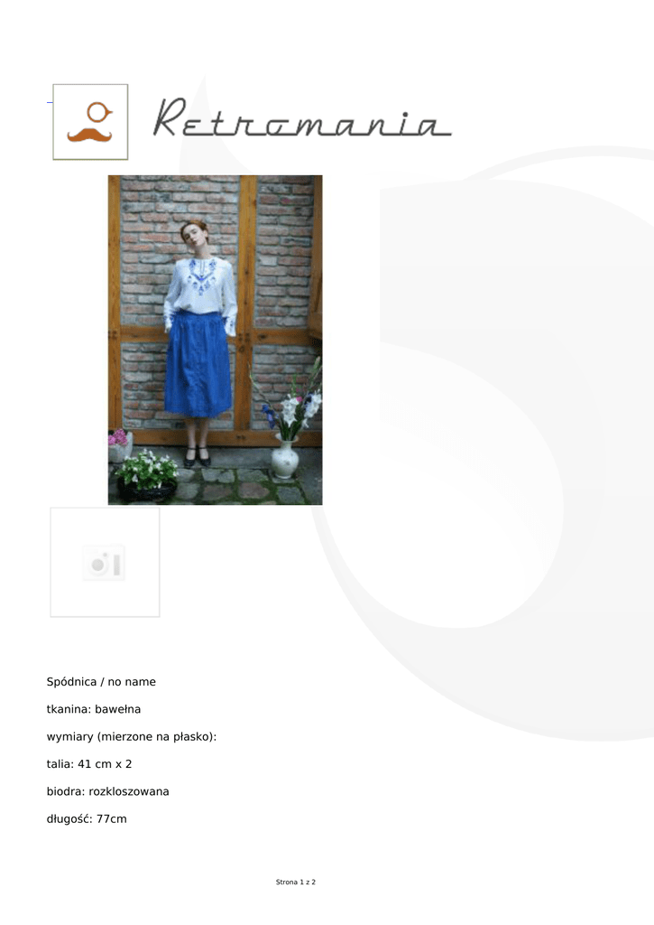 Spódnica / no name tkanina: bawełna wymiary (mierzone na płasko): talia: 41 cm x 2 biodra: rozkloszowana długość: 77cm Strona 1 z 2 Strona 2 z 2