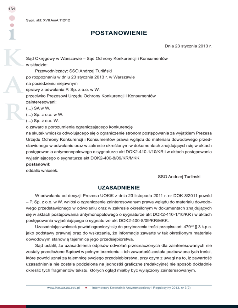postanowienie - Internetowy Kwartalnik Antymonopolowy i