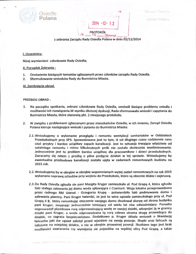 z zebrania Zarzqdu Rady Osledia PoFana w dniu 02/12/2014