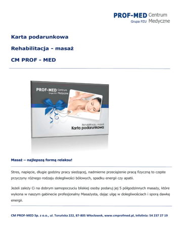 Karta podarunkowa Rehabilitacja - masaż CM PROF