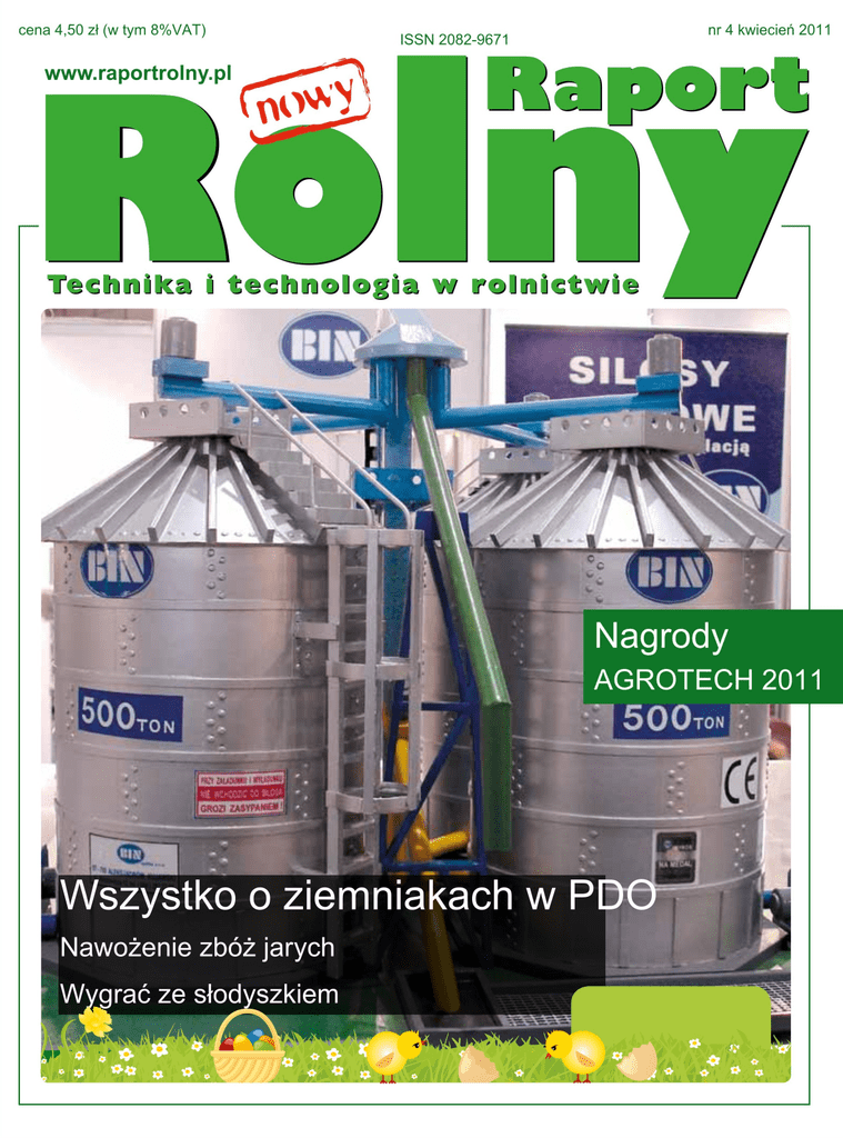 SPIS TREŚCI RAPORT Najchętniej odwiedzana wystawa Targów Kielce ................. 2 Targi w Lubaniu ....................................................................... 3 Wysokie oceny dla Polagra Premiery ..................................... 4 Modrze szykuje się na targi .................................................... 5 URODZAJ Czy zapłaciłeś hodowcy ........................................................ 6 Bezpieczeństwo zapylaczy ..................................................... 8 Wygrać ze słodyszkiem ......................................................... 10 Skuteczna ochrona strączkowych ........................................ 12 Nawożenie zbóż jarych ......................................................... 14 Choroby grzybowe pszenicy ................................................ 18 Zwalczanie miotły zbożowej ................................................. 22 Zwalczanie chwastów w kukurydzy ..................................... 26 Ziemniaki w PDO .................................................................. 30 Dolistne dokarmianie ziemniaków ...................................... 36 FARMA Mieszanki traw z motylkowymi ............................................. 38 Stymulując rzepak stymulujesz swój dochód ...................... 42 Nowy fungicyd dla roślin warzywnych ................................. 45 TRAKTOR T4 PowerStar New Holland ................................................... 46 Metal-Fach prasa pasowa .................................................... 48 Nagrody AGROTECH 2011 ................................................... 50 Technika opryskiwania roślin ................................................ 55 w w w . r a p o r t r o l n y. p l Redakcja: Redaktor Naczelny: Roman Barszcz Redaktor Prowadzący: Jolanta Malinowska-Kłos (58) 324 10 87 [email protected] [email protected] Konsultant Naukowy: dr Ireneusz Kowalik Uniwersytet Przyrodniczy w Poznaniu Reklama: Danuta Grażyna Barszcz e-mail: [email protected] tel.: 58 308 93 10 GSM +48 504 129 302 Projekty graficzne i skład AngeDesign [email protected] www.angedesign.pl GSM: 0 502 744 506 Sekretariat/prenumerata tel./faks: (58) 300 06 89 e-mail: [email protected] Lista dystrybutorów terenowych Raportu Rolnego: 16 oddziałów wojewódzkich Agencji Rynku Rolnego Autorzy artykułów: Jolanta Malinowska-Kłos, Grzegorz Pruszyński, Paweł Kochański, Eliza Gaweł, Piotr Stopyra, Józef Robak, Sylwester Borowski, Joanna Dombrowska, Marek Mrówczyński, Henryk Wachowiak, Remigiusz Waligóra, Dorota Pikuła, Marek Korbas, Adam Paradowski, Bogdan Z. Jarociński Marcin Kozak, Roman Warzecha Prenumeratę można rozpocząć od dowolnego miesiąca. Nie wymaga ona ponownego zamawiania na następny rok. Jest automatycznie przedłużana, aż do jej pisemnego odwołania. PRENUMERATA: 45 zł/rok nr konta: 38 1060 0076 0000 3260 0191 3142 Wydawnictwo AGENCJA ROLNA Roman Barszcz 83-000 Pruszcz Gdański,ul. Mickiewicza 1 NIP: 584-141-87-23 Prenumeratę instytucjonalną Raportu Rolnego można zamawiać w oddziałach firmy Kolporter S.A. na terenie całego kraju. Informacje pod numerem infolinii 0801-205-555 lub na stronie internetowej http://www.kolporter-spolka-akcyjna.com.pl/prenumerata.asp Redakcja nie ponosi odpowiedzialności za treść reklam, ogłoszeń i nadesłanych materiałów. Materiały prasowe i fotograficzne wykorzystano za zgodą ich właścicieli. Zastrzegamy sobie prawo do zmian i skrótów nadesłanych tekstów. Prawa autorskie do tekstów i zdjęć oraz opracowania graficzne reklam zastrzeżone. Redakcja składa serdeczne podziękowania za nadesłane materiały. druk: drukarnia ArtDruk 1 RAPORT Najchętniej odwiedzana wystawa w historii Targów Kielce. Liczba gości zwiedzających targi AGROTECH i LAS-EXPO po raz pierwszy przekroczyła 50 000! Międzynarodowe Targi Techniki Rolniczej oraz Targi Przemysłu Drzewnego i Gospodarki Zasobami Leśnymi są najchętniej odwiedzanymi wystawami w Targach Kielce i tej branży w Polsce. Pod względem liczby gości, targi AGROTECH i LAS-EXPO uplasowały się na trzecim miejscu w Polsce. - W porównaniu do 2010 roku zanotowaliśmy aż o ponad 9 tysięcy więcej zwiedzających – powiedziała z dumą wiceprezes Zarządu Targów Kielce, Bożena Staniak. – W ogóle, jeśli chodzi o targi rolnicze i leśne to ten rok był wyjątkowy. Rekordowa była nie tylko liczba zwiedzających, ale również liczba wystawców. Swoje stoiska miało 550 firm z 16 krajów. Powierzchnia przeznaczona pod targi po raz pierwszy przekroczyła 50 000 metrów kwadratowych. Ponadto wystawy otworzyli wyjątkowi goście: komisarz UE ds. rolnictwa i rozwoju wsi Dacian Cioloş oraz minister rolnictwa i rozwoju Wsi Marek Sawicki – podsumowała wiceprezes. Drugiego i trzeciego dnia targów (12 i 13 marca) stoiska wystawiennicze odwiedziła grupa delegatów z sektora rolnictwa Bośni i Hercegowiny. Wizyta studyjna zorganizowana została przez Fundację Programów Pomocy dla Rolnictwa FAPA w ramach projektu finansowanego z Unii Europejskiej pt. „Wzmocnienie zdolności programowania rolnictwa i obszarów wiejskich”. 2 Imprezy odbyły się we wszystkich 7 pawilonach oraz specjalnie przygotowanych 4 halach namiotowych. Wiele z około 2 tysięcy prezentowanych eksponatów, to światowe premiery na rynku polskim, często będące świadectwem niezwykłego postępu technologicznego, jaki w ciągu kilku ostatnich lat dokonał się w polskim rolnictwie. Najlepiej można zaobserwować to właśnie na targach AGROTECH. Wystawie AGROTECH towarzyszyło wiele ważnych ogólnopolskich wydarzeń. Wśród nich był między innymi Krajowy Finał Olimpiady Młodych Producentów Rolnych, w którym udział wzięło 80 najlepszych zawodników z całej Polski, wyłonionych spośród aż 1200 przystępujących do pierwszego etapu zmagań. Uroczysta gala rozdania nagród zgromadziła tłumy wystawców, którzy z napięciem czekali na ogłoszenie wyników. Wieczór wzbudził 