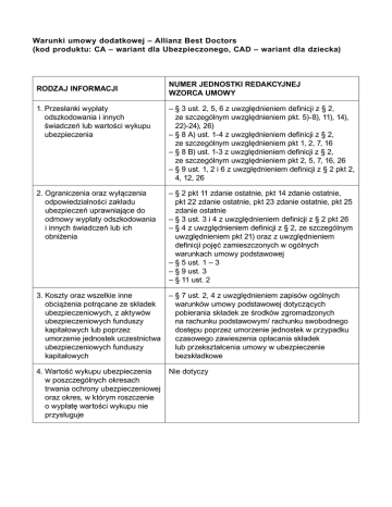 Warunki umowy dodatkowej – Allianz Best Doctors