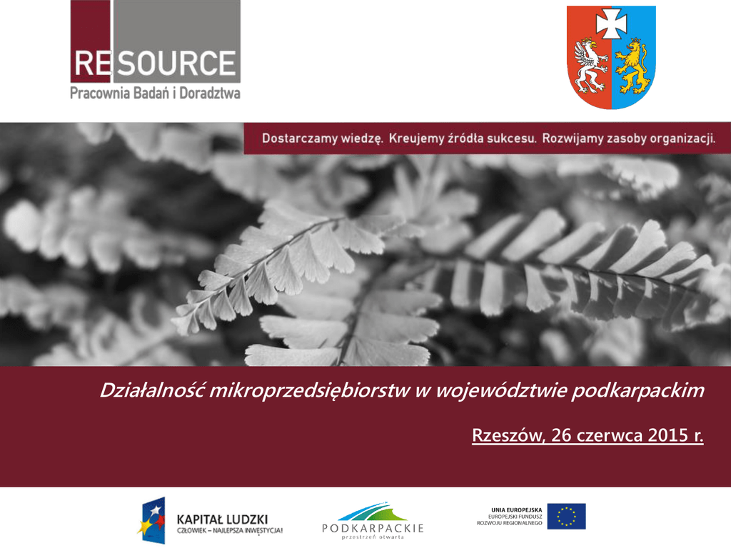 Działalność mikroprzedsiębiorstw w województwie podkarpackim Rzeszów, 26 czerwca 2015 r. CELE I PROBLEMATYKA BADANIA CELE BADANIA CEL GŁÓWNY BADANIA: DIAGNOZA STANU I ANALIZA DZIAŁALNOŚCI GOSPODARCZEJ ORAZ GŁÓWNYCH PROBLEMOWYCH MIKROPRZEDSIĘBIORSTW W WOJEWÓDZTWIE PODKARPACKIM (Z OBSZARÓW UKAZANIEM ICH KONDYCJI NA TLE INNYCH WOJEWÓDZTW ORAZ POLSKI W LATACH 2008-2012) 1) analiza mikroprzedsiębiorstw w województwie podkarpackim na tle innych regionów i Polski oraz wskazanie jej specyfiki (np. struktura wewnętrzna wg profilu działalności, zatrudnienia, dochodów z działalności); 2) ocena struktury mikroprzedsiębiorstw w ujęciu przestrzennym ; 3) ocena uwarunkowań dla rozwoju sektora mikroprzedsiębiorstw ; 4) analiza konkurencyjności mikroprzedsiębiorstw na lokalnym, regionalnym i krajowym rynku; 5) stan i struktura sektora mikroprzedsiębiorstw w województwie podkarpackim w porównaniu do pozostałych typów przedsiębiorstw (małe, średnie, duże) na Podkarpaciu; CELE SZCZEGÓŁOWE V CELE SZCZEGÓŁOWE CELE BADANIA 6) zidentyfikowanie barier rozwoju wskazanie kierunków ich likwidacji; przedsiębiorczości oraz 7) ocena wpływu integracji z UE i funduszy unijnych na stan rozwoju mikroprzedsiębiorstw na Podkarpaciu, w tym analiza ilości i wartość uzyskanych przez przedsiębiorców w tym mikro dotacji na założenie i rozwój działalności gospodarczej (układ geograficzny i sektorowy, wg źródeł: RPO, PROW, POKL, urzędy pracy, programy krajowe); 8) uzyskanie rekomendacji dla przyszłych działań mających na celu rozwój przedsiębiorczości w ramach polityk wsparcia unijnego; 9) poznanie opinii właścicieli mikroprzedsiębiorstw na temat istotnych obszarów funkcjonowania przedsiębiorstw (oceny sytuacji gospodarczej, sytuacji finansowej, zatrudnienia, dostępności zewnętrznego finansowania, inwestycji, eksportu, innowacyjności, otoczenia biznesu); METODOLOGIA BADANIA METODY I TECHNIKI BADAWCZE WYNIKI BADANIA I UWARUNKOWANIA PROCESU BADAWCZEGO ORAZ ANALIZ STRUKTURA I KONDYCJA MIKROPRZEDSIĘBIORSTW Liczba mikroprzedsiębiorstw przypadająca na 100 tys. ludności w poszczególnych województwach w 2012 roku 5 069 Liczba nowo zarejestrowanych i wykreślonych z rejestru REGON podmiotów gospodarki narodowej w przeliczeniu na 10 tys. ludności w poszczególnych województwach w 2012 roku 3 632 5 281 3 611 4 112 5 740 5 249 4 401 4 744 4 982 3 496 3 696 3 593 4 509 3 263 4 807 Liczba mikroprzedsiębiorstw przypadająca na 100 tys. ludności powyżej 5100 od 4501 do 5 100 od 4000 do 4500 poniżej 4000 (3) (5) (2) (6) Liczba podmiotów na 10 tys. ludności 120 jednostki nowo zarejestrowane jednostki wykreślone z rejestru Stosunek podmiotów nowo zarejestrowanych do wykreślonych z rejestru 150% i więcej od 140 do 149% od 130 do 139% poniżej 130% (2) (6) (5) (3) STRUKTURA I KONDYCJA MIKROPRZEDSIĘBIORSTW Rozkład terytorialny podmiotów gospodarki narodowej zatrudniających do 9 pracowników w roku 2012 bieszczadzki 1,40% leski 1,80% lubaczowski 2,00% 5,6 3,2 2,2 2,5 … 2,6 2,2 2 6,4 3,6 mielecki 6,40% rzeszowski 6,90% Rzeszów 14,50% 5,3 14,5 2,9 5,5 2,3 6,9 2,4 3,9 2,4 5 3,5 Rozkład tery torialny 4,7 mikroprzedsiębiorstw (w %) 4,4 1,8 1,4 5% i więcej od 3,1 do 4,9% od 2,5 do 3,0% do 2,4% (7) (6) (4) (8) Ambiwalentny charakter danych z rejestru REGON – wyczerpujący charakter bazy vs. problemy dot. jej aktualizacji utrudniające wnioskowanie o wielkości sektora przedsiębiorstw (w tym podmiotów mikro) STRUKTURA I KONDYCJA MIKROPRZEDSIĘBIORSTW Liczba nowo zarejestrowanych i wykreślonych z rejestru REGON podmiotów gospodarki narodowej w przeliczeniu na 10 tys. ludności Stosunek nowo zarejestrowanych podmiotów do podmiotów wyrejestrowanych: 100 78 80 66 61 61 55 50 40 56 51 51 43 38 36 48 42 54 51 46 45 54 60 53 52 52 45 44 92 82 73 75 78 77 64 93 90 71 69 100 94 83 60 Rok 2010: Polska – 142,4% Podkarpacie – 142% 104 Ryzyko nadinterpretacji danych w przypadku gwałtownych zmian w danym momencie pomiaru 73 70 65 68 64 56 61 51 62 65 52 66 65 52 47 45 39 30 20 2003 2004 2005 2006 2007 podmioty nowo zarejestrowane woj. podkarpackie podmioty nowo zarejestrowane Makroregion Polski Wschodniej podmioty wykreślone z rejestru Polska 2008 2009 2010 2011 2012 podmioty nowo zarejestrowane Polska podmioty wykreślone z rejestru woj. podkarpackie podmioty wykreślone z rejestru Makroregion Polski Wschodniej STRUKTURA I KONDYCJA MIKROPRZEDSIĘBIORSTW 80,3% 19,7% Polska 78,4% 21,6% Makroregion Polski Wschodniej 80,5% 19,5% woj. podkarpackie 80,7% 19,3% 2009 2008 woj. podkarpackie Polska 78,0% 22,0% Makroregion Polski Wschodniej 80,5% 19,5% 2010 woj. podkarpackie 80,9% Struktura mikroprzedsiębiorstw pod względem formy prawnej prowadzenia działalności w poszczególnych województwach w 2012 roku 75,1 77,3 80,9 77,9 19,1% Polska 77,9% 22,1% Makroregion Polski Wschodniej 80,4% 19,6% woj. podkarpackie 80,0% 20,0% 74,6 71,4 74 78,9 79,3 2011 70,9 Polska 76,8% Makroregion Polski Wschodniej 79,6% 2012 woj. podkarpackie 20,8% 76,0% Makroregion Polski Wschodniej 24,0% 78,8% 0% 20% 40% 80,8 75,2 20,4% 79,2% Polska osoby fizyczne 23,2% 78,9 76,9 Formy prawne - udział ośób fizycznych (w %) 78% i więcej od 76 do 77% od 74 do 75% do 73% 79,2 77,7 (6) (4) (4) (2) 21,2% 60% 80% 100% pozostałe formy prawne Forma prawna jako przykład danych o ograniczonym charakterze różnicującym badaną populację w wymiarze terytorialnym, jak i temporalnym STRUKTURA I KONDYCJA MIKROPRZEDSIĘBIORSTW Struktura branżowa wg sekcji PKD 2007 w poszczególnych podregionach woj. podkarpackiego w 2012 roku Sekcje PKD mikroprzedsiębiorstwa małe przedsiębiorstwa średnie przedsiębiorstwa duże przedsiębiorstwa krośnieński przemyski rzeszowski tarnobrzeski krośnieński przemyski rzeszowski tarnobrzeski krośnieński przemyski rzeszowski tarnobrzeski krośnieński przemyski rzeszowski tarnobrzeski A. 4,3% 2,3% 1,3% 1,6% 1,2% 3,3% 0,8% 0,7% 3,8% 2,9% 1,0% 2,1% 0,0% 0,0% 1,3% 0