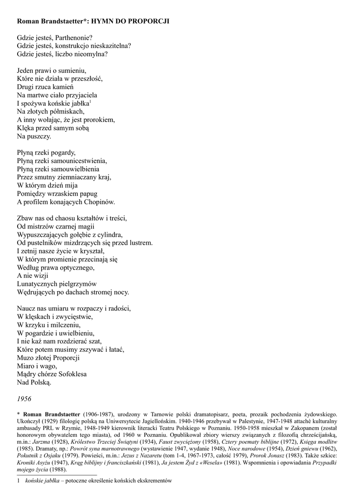 Roman Brandstaetter*: HYMN DO PROPORCJI Gdzie jesteś