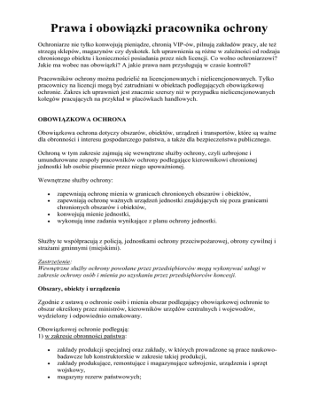 Prawa i obowiązki pracownika ochrony