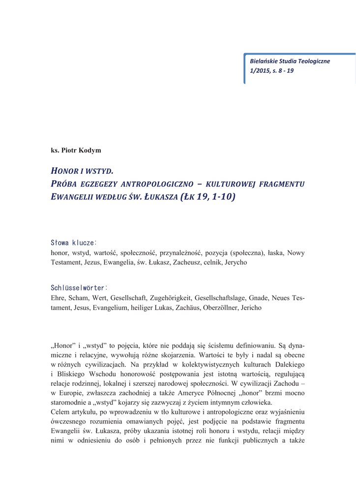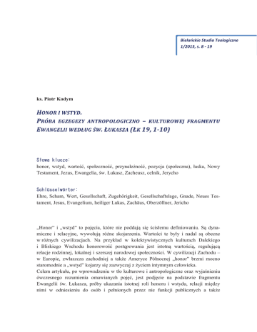 .6 3 ,275 . 2'<0 wskazania zakorzenienia ewangelisty w kulturę honoru i wstydu i odnoszenie się jego