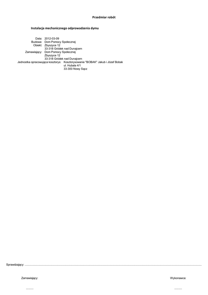 Przedmiar robót Instalacja mechanicznego odprowadzenia dymu