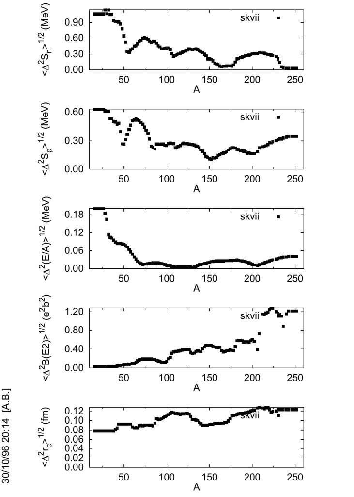 <∆2Sn>1/2 (MeV) skvii 0.90 0.60 0.30 0.00 50 100 150 200 250 <∆2Sp>1/2 (MeV) A 0.60 skvii 0.30 0.00 50 100 150 200 250 <∆2(E/A)>1/2 (MeV) A 0.18 skvii 0.12 0.06 0.00 50 100 150 200 250 1.20 skvii 0.80 0.40 0.00 50 100 150 200 250 A <∆2rc>1/2 (fm) 30/10/96 20:14 [A.B.] <∆2B(E2)>1/2 (e2b2) A 0.12 0.10 0.08 0.06 0.04 0.02 0.00 skvii 50 100 150 A 200 250