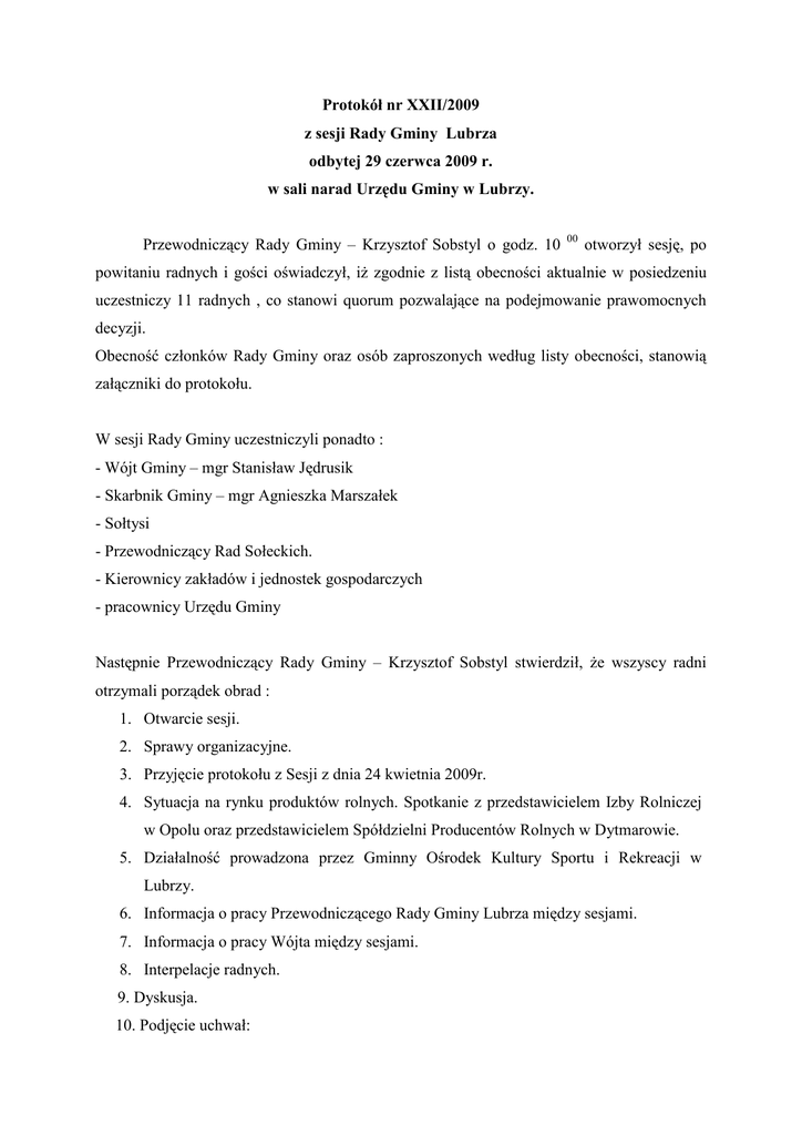 Protokó³ nr XXII - Urząd Gminy w Lubrzy