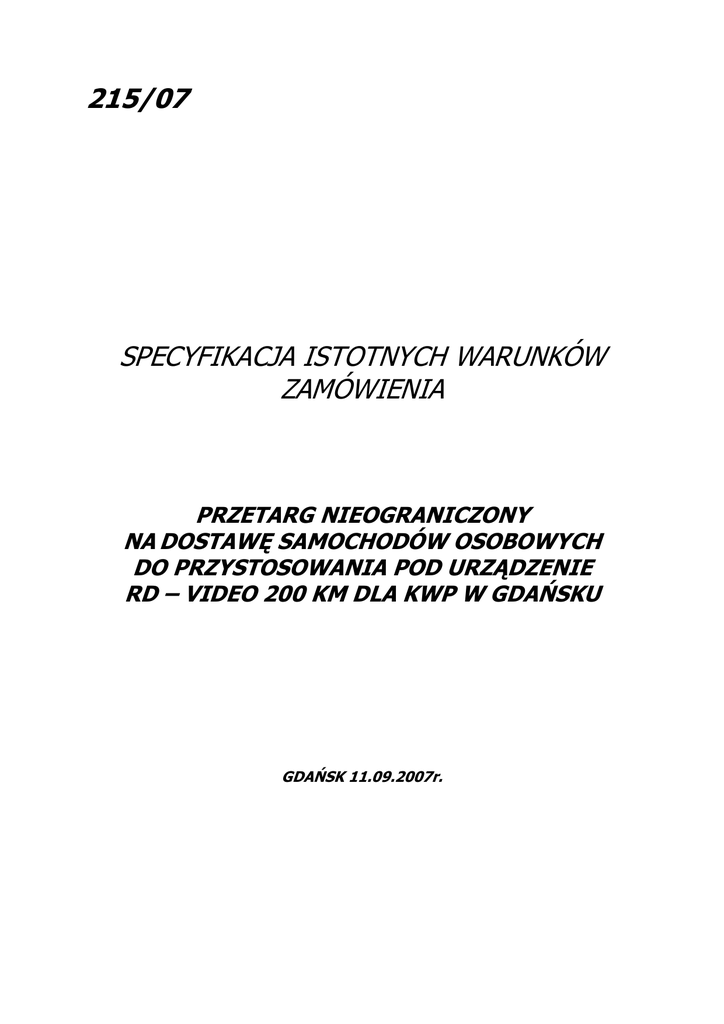 215/07 specyfikacja istotnych warunkěw zaměwienia