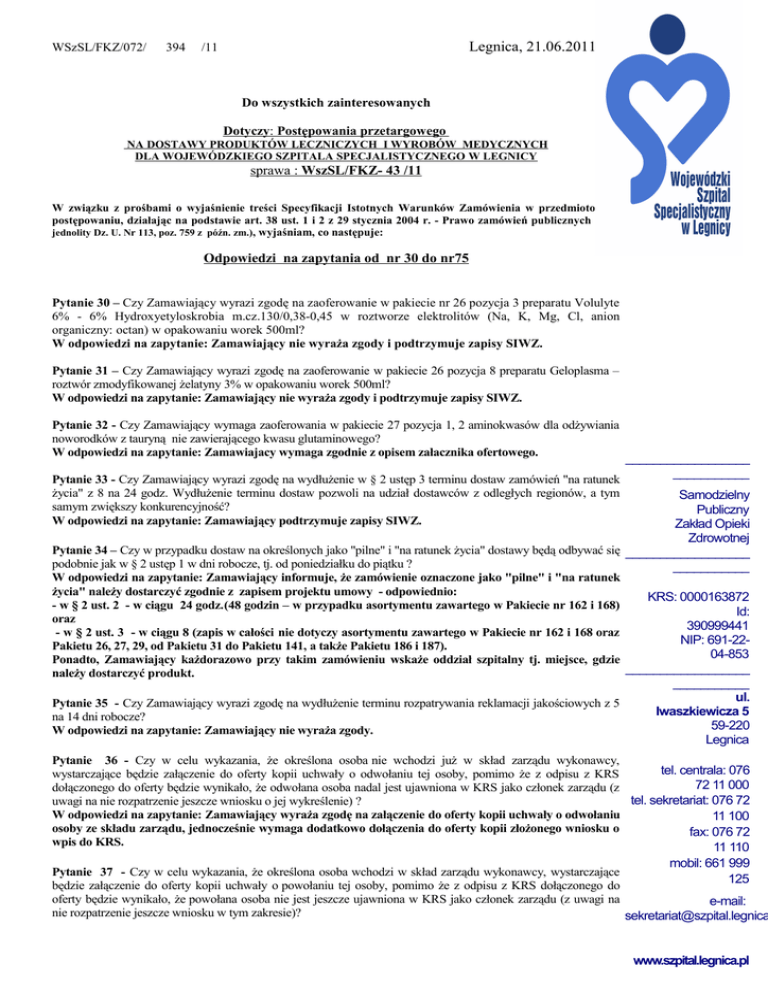 zapytania od 30 do 75 - Wojewódzki Szpital Specjalistyczny w Legnicy