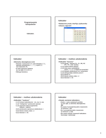 Programowanie komputerów Kalkulator Kalkulator Kalkulator