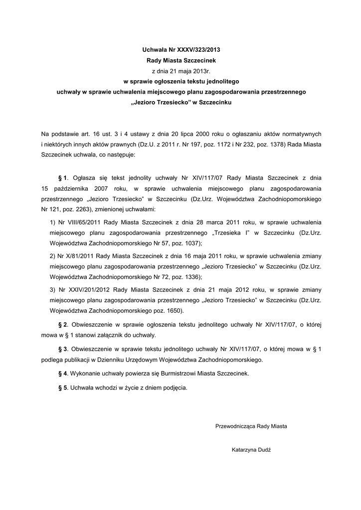Nr XXXV/323/2013 w sprawie ogłoszenia tekstu jednolitego uchwały