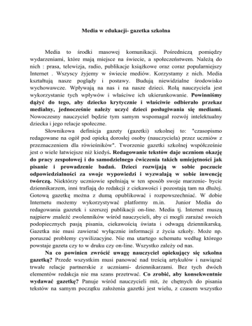Media w edukacji- gazetka szkolna Media to środki masowej