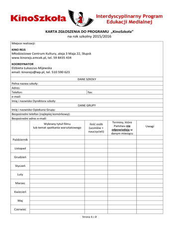 KINO SZKOŁA - KARTA ZGŁOSZENIA