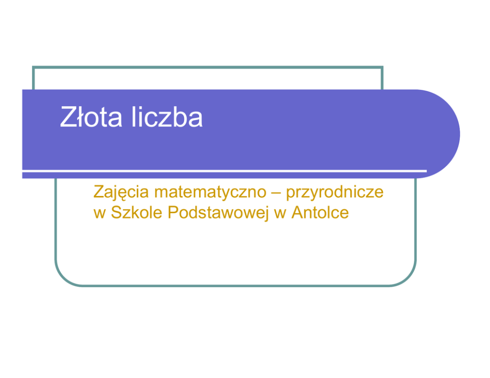 Złota liczba Zajęcia matematyczno – przyrodnicze w Szkole Podstawowej w Antolce Ciąg Fibonacciego 1,1, 2, 3, 5, 8, 13, 21, 34, 55, 89, 144, 233,377,… • Ciąg Fibonacciego ma wiele ciekawych własności. • Zbadajmy jedną z nich. • Podzielmy przez siebie dwie kolejne liczby tego ciągu (liczbę większą przez mniejszą) Ciąg Fibonacciego 1,1, 2, 3, 5, 8, 13, 21, 34, 55, 89, 144, 233,377,… • Zacznijmy dzielenie od liczby 5. 5:3 = 1,6…. 8:5 = 1,6 13:8 = 1,6…. 21:13 = 1,6…. Wynik tego dzielenia zawsze daje liczbę równą w przybliżeniu 1,6 Liczbę tą nazywamy złotą liczbą i oznaczamy przez f f =1,6 Złota liczba • Złota liczba – f jest równa w przybliżeniu 1,618033989 • Złota liczba jest związana z tak zwanym złotym podziałem zadziwiała przez stulecia matematyków, architektów, botaników, fizyków i artystów niezwykle interesującymi własnościami. Złoty podział odcinka Złoty podział, podział harmoniczny, złota proporcja, złote cięcie polega na podziale odcinka na dwie części tak, by stosunek długości dłuższej z nich do krótszej był taki sam, jak całego odcinka do części dłuższej i był równy złotej liczbie φ . (Iloraz tych odcinków jest równy około 1,6) Złoty podział odcinka • Stosunek dłuższej części odcinka do krótszej, jest taki sam, jak stosunek całego odcinka do dłuższej części. • liczba wyrażająca stosunek złotego podziału to złota liczba (oznaczana grecką literą φ (fi)). a b a+b a b a+b a Złoty podział odcinka • Czy potrafisz skonstruować taki odcinek, aby po podzieleniu go na dwie równe części otrzymać złoty podział? a b a+b Złote cięcie w przyrodzie • Na wspólnej gałązce między każdymi dwiema parami listków trzecia para leży w miejscu złotego cięcia. Złote cięcie w przyrodzie Złote cięcie w przyrodzie Można skonstruować przyrząd do sprawdzania złotej proporcji Złote cięcie w przyrodzie Złote cięcie w przyrodzie Złote cięcie w przyrodzie Złote cięcie w przyrodzie • Nikt nie rozumiał boskiej struktury ludzkiego ciała lepiej niż Leonardo da Vinci. • Ekshumował nawet zwłoki, żeby mierzyć dokładne proporcje budowy kostnej człowieka. • On pierwszy wykazał, że ludzkie ciało jest dosłownie zbudowane z elementów, których proporcje wymiarów zawsze równają się Fi. Złote cięcie w przyrodzie Złote cięcie w architekturze W starożytności • Grecy wysoko cenili harmonię i proporcje. • Złoty podział uważali za proporcję doskonałą. • Stosowali go w architekturze i sztuce. Złote cięcie w architekturze Parthenon na Akropolu • fronton świątyni mieści się w złotym prostokącie • plan świątyni jest złotym prostokątem Złote cięcie w architekturze Apollo Belwederski • Twórcą rzeźby był Leochares (IV wiek pne.) • Linia I dzieli na dwie części całą postać w złotej proporcji, • linia E wskazuje złotą proporcję między głową a górną częścią tułowia, • linia O zaznacza podział nóg w kolanach według złotego cięcia. Złote cięcie w architekturze Złote cięcie w architekturze Renesans • okres wielkiej fascynacji antykiem, • złota proporcja nazywana jest boską proporcją (divina proportio), • powstaje traktat matematyczny „O boskiej proporcji” Luca Pacioli (1509r.), • ilustracje do traktatu wykonuje Leonarda da Vinci – mistrz proporcji i perspektywy. Złoty kąt • Jeśli podzieli się kąt pełny (360 stopni) w stosunku złotym, otrzyma się tzw. złoty kąt. Okazuje się, że ten złoty kąt jest bardzo często spotykany u roślin: nasiona słonecznika, kwiat kalafiora, w szyszkach i ananasach. Złote cięcie w architekturze • Na podsumowanie można stwierdzić, iż zjawiska, których struktura oparta jest na ciągu Fibonacciego, sprawiają przyjemność zmysłom wzroku i słuchu istot ludzkich. • Dowodem na to może być to, że złotymi proporcjami wyznaczonymi na podstawie ciągu Fibonacciego posługiwał się w swoim malarstwie Leonardo da Vinci, podobnie jak Botticelli. • Złote proporcje wykorzystano także podczas wznoszenia piramidy Cheopsa w Gizie i Partenonu w Grecji.