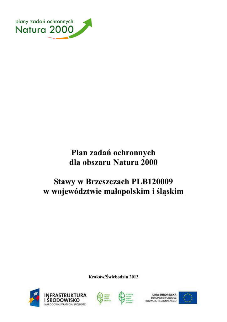 Plan zadań ochronnych dla obszaru Natura 2000 Stawy w Brzeszczach PLB120009 w województwie małopolskim i śląskim Kraków/Świebodzin 2013 Wykonawca: MGGP S.A. i Klub Przyrodników na zlecenie Regionalnej Dyrekcji Ochrony Środowiska w Krakowie Autorzy: Robert Stańko – koordynator projektu PZO, ekspert botanik Michał Ciach - ekspert ornitolog Magdalena Grzebinoga – kierownik projektu, ekspert hydrolog Dorota Horabik – z-ca koordynatora projektu PZO Jaromir Borzuchowski – ekspert GIS Spis treści 1. Etap wstępny pracy nad Planem......................................................................................... 4 1.1. Informacje ogólne ................................................................................................. 4 1.3. Mapa obszaru Natura 2000.......................................................................................... 6 1.4. Opis założeń do sporządzenia Planu ........................................................................... 7 1.5. Ustalenie przedmiotów ochrony objętych Planem ...................................................... 9 1.6. Opis procesu komunikacji z różnymi grupami interesu. ........................................... 11 1.7. Kluczowe instytucje/osoby dla obszaru i zakres ich odpowiedzialności .................. 12 1.8. Zespól Lokalnej Współpracy..................................................................................... 13 2. Etap II Opracowanie projektu Planu ................................................................................ 17 Moduł A……………………………………………………………………………………18 2.1. Informacja o obszarze i przedmiotach ochrony ............................................................ 18 2.2. Ogólna charakterystyka obszaru ............................................................................... 20 2.4. Zagospodarowanie terenu i działalność człowieka ................................................... 24 2.5. Istniejące i projektowane plany/programy/projekty dotyczące zagospodarowania przestrzennego .................................................................................................................. 25 2.6. Informacja o przedmiotach ochrony objętych Planem wraz z zakresem prac terenowych – dane zweryfikowane. ................................................................................. 39 2.6.1. Typy siedlisk przyrodniczych ............................................................................ 42 2.6.2. Gatunki roślin i ich siedliska występujące na terenie obszaru .......................... 42 2.6.3. Gatunki zwierząt i ich siedliska występujące na terenie obszaru...................... 42 Moduł B ............................................................................................................................... 49 3. Stan ochrony przedmiotów ochrony objętych Planem ......................................................... 49 4. Analiza zagrożeń ................................................................................................................. 57 5. Cele działań ochronnych ...................................................................................................... 76 Moduł C ............................................................................................................................... 80 6. Ustalenie działań ochronnych .............................................................................................. 80 7. Ustalenie działań w zakresie monitoringu stanu ochrony przedmiotów ochrony .............. 101 8. Wskazania do dokumentów planistycznych....................................................................... 103 10. Projekt weryfikacji SDF obszaru i jego granic ................................................................ 104 11. Zestawienie uwag i wniosków.......................................................................................... 105 12. Literatura .......................................................................................................................... 109 Plan Zadań Ochronnych obszaru Natura 2000 Stawy w Brzeszczach PLB120009 w województwach: małopolskim i śląskim 1. Etap wstępny pracy nad Planem 1.1. Informacje ogólne Nazwa obszaru Kod obszaru Opis granic obszaru SDF Położenie Powierzchnia obszaru (w ha) Status prawny Termin przystąpienia do sporządzenia Planu Termin zatwierdzenia Planu Koordynator Planu Planista Regionalny Sprawujący nadzór Stawy w Brzeszczach PLB120009 Tabela punktów załamań granic (załącznik nr 1) Plik PDF Standardowego Formularza Danych (załącznik nr 2) Województwo małopolskie, powiat oświęcimski, Brzeszcze – gmina miejska (obr. ew.: Brzeszcze) , Brzeszcze – gmina wiejska (obr. ew.: Jawiszowice), Oświęcim – gmina wiejska (obr. ew.: Babice, Brzezinka, Harmęże, Pławy, Rajsko); województwo śląskie, powiat bielski, Wilamowice – gmina wiejska (obr. ew.: Dankowce, Bestwinka Bestwińska, Bestwinka Kaniowska), powiat pszczyński, gmina Miedźna (obr. ew.: Góra, Gilowice, Wola), powiat bieruńsko – lędziński, Bieruń (obr. ew.: Bijasowice), Bojszowy (obr. ew.: Jedlina). 3066,00 ha Obszar wyznaczony Rozporządzeniem Ministra Środowiska z dnia 27 października 2008 r. zmieniającym rozporządzenie w sprawie obszarów specjalnej ochrony ptaków Natura 2000 (Dz. U. Nr 198 poz. 1226) 12-06-2012 r. Robert Stańko, [email protected], +48 683828236 Małgorzata Michna, [email protected], +48 126198146 Regionalny Dyrektor Ochrony Środowiska w Krakowie 1.2 Ustalenie terenu objętego Planem L.p. Nazwa krajowej formy ochrony przyrody lub nadleśnictwa, pokrywającej/go się z obszarem, Dokument planistyczny 4 Uzasadnienie wyłączenia Powierzchnia części terenu ze sporządzania krajowej formy PZO ochrony przyrody lub która/e może powodować wyłączenie części terenu ze sporządzania Planu brak nadleśnictwa p