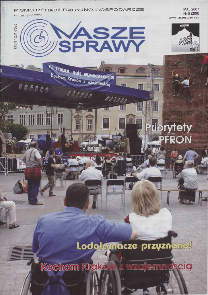 MAJ 2007 Nr 5 (208) www.naszesprawy.eu rytety FRON k«jgAW/zaiiie:rmiim[@SjCia W NUMERZE M.IN. SZANOWNI CZYTELNICY W zorcowe warunki p ra c y ...............s. 4 Wszyscy chcieli dobrze... W rocławska Spółdzielnia Inw alidów ELW AT „...to zakład wyjątkow o przyjazny dla osób niepełnospraw nych" uznała Kapituła Konkursu Lodołam cze 2007 na D olnym Śląsku ~¥esz.cze w kwietniu - o czym informowaliśmy w ostatnim numerze # „ N S” - ze stanowiska prezesa Zarządu PFRO N odwołano Andrzeja Sochaja, który piastował je przez pół roku, a premier powołał na nie Ryszarda Wijasa. W maju natomiast, ja k podała Gazeta Prawna, dymisję złożył Mirosła w Mielniczuk, sekretarz stanu w resorcie pracy, pełnom ocnik rządu ds. osób niepełnosprawnych, dziękując za By godnie i pięknie ż y ć ..................s. 6 współpracę m.in. Krajowej Izbie Gospodarczo-Rehabilitacyjnej. Oficjalnie 17 maja na g a li w Królewskich jednak Ministerstwo Pracy i Polityki Społecznej nie poinformowało o tej Łazienkach w W arszawie dymisji, minister M ielniczuk nadal pełni swe funkcje. Centralna Kapituła ogłosiła Te dokonane i przewidywane zmiany personalne nie zahamowały w yniki drugiej edycji Konkursu Lodołam acze 2007 procesu legislacyjnego dotyczącego nowelizacji ustawy o rehabilitacji. Została ona przyjęta przez Sejm 9 maja, mimo ii niektóre zapisy projektu Koszty rehabilitacji zawodowej... s. 10 negatywnie zaopiniowała sejmowa Podkomisja Stała ds. Osób Niepeł nosprawnych. Zapisy te w większości są zbieżne z rządowym projektem Konferencja zorganizowana przez KIG-R nowelizacji tej ustawy, wraz. ze złożoną przez rząd autopoprawką, a główne obnażyła fiasko polityki społecznej państw a w zakresie wzrostu aktyw ności K I G - R zmiany dotyczą: zaw odow ej osób niepełnosprawnych - zamiany dotychczasowego finansowania składek na ubezpieczenie społeczne osób niepełnosprawnych na refundację ze środków PFRON, Jakość, profesjonalizm wypłacaną w okresach miesięcznych, s. 18 i „ludzka twarz...” .......... - przesunięcia terminu opłacania pełnych składek z tytułu ubezpieczenia społecznego przez rencistów prowadzących działalność gospodarczą lub rolniczą na 1 stycznia 2008 r.; składki te będą również mogły być ...to wizytówka Spółki JAR E XS refundowane ze środków PFRON, z Legnicy, która nie tylko inwestuje w rozw ój swych pracowników, - wykluczenia z grona pracowników z niesprawnościami, o których ale angażuje się w przedsięwzięcia dofinansowanie wynagrodzeń można się ubiegać ze środków PFRON na rzecz otoczenia społecznego osób, które mają ustalone prawo do emerytury. Refundacja składek, które najpierw należy opłacić ze środków własnych, stanowi de facto przerzucenie na pracodawców obowiązków Kocham Kraków z wzajemnością s. 32 ZUS i PFRON, wpłynie na wzrost kosztów działalności firm , może też To hasło VIII Tygodnia r. j g stanowić problem i grozić utratą płynności finansowej przez przedsię Osób Niepełnosprawnych, 5. biorstwa niewielkie, w tym spółdzielnie inwalidów. w ram ach którego m.in. Dzielenie zaś pracowników z niesprawnościami na dwie grupy i prefe wręczono Fundacji Sztuki Osób Niepełnosprawnych rowanie dofinansowaniem do wynagrodzeń wyłącznie osób nie posiadają nagrodę Pro Publico Bono cych ustalonego prawa do emerytury - aczkolwiek być może dopuszczalne i logiczne z punktu widzenia solidaryzmu społecznego - ma się nijak do Ekspresja ta ń c a .............................s. 34 celów Strategii Lizbońskiej i deklaracji rządu o wspieraniu działań na M istrzostwa Polski w tańcu rzecz wydłużania aktywności zawodowej wszystkich obywateli. Czyżby na wózkach dowiodły, że ten posłowie nie mieli świadomości, że Polska jest niechlubnym liderem rodzaj ekspresji nie w zatrudnianiu osób w wieku 55-64 lat? Tylko 27proc. osób w tym wieku uznaje ograniczeń ma w naszym kraju pracę, podczas gdy m.in. w Danii, Estonii, Finlandii, i je s t dostępny dla każdego Irlandii, Wielkiej Brytanii i na Cyprze wskaźnik ten wynosi 50 proc. Szerzej znowelizowaną ustawę o rehabilitacji przedstawimy i omówimy W NASTĘPNYM NUMERZE M.IN.: je j skutki po przyjęciu przez Senat i podpisaniu przez prezydenta. Nowela ta miała w założeniach zachęcić do zatrudniania osób niepełnosprawnych, - Potrzeby osób niepełnosprawnych w aktywizacji tymczasem kolejne stawiane przez nią bariery raczej zniechęcą i odstraszą zawodowej pracodawców. Znów prawdę mówi polskie porzekadło: wszyscy chcieli - Walne Zgromadzenie członków KIG-R dobrze, a wyszło tak ja k zawsze. - Bariery w zatrudnianiu niepełnosprawnej młodzieży - W Tczewie - Teatry zaiste wspaniałe : zqa - Zwyciężać mimo wszystko Na okładce: VIII Tydzień Osób Niepełnosprawnych w Krakowie fot. ina-press Y pfU w y Nasze Sprawy - Pismo Rehabilitacyjno-Gospodarcze - Magazyn Niepełnosprawnych Wydawca i redakcja: Agencja „Nasze Sprawy". 40-084 Katowice, ul. Sokolska 3. Redaktor naczelny: Rvszard Rzebko telefaks 032. 253-05-41, 2596-221..5, tel. kom. 0 6 0 1. 4 14-460, e-mail: [email protected] w w w .n a sz e sp ra w y .c o m .p lw w w .n ie p e ln o sp ra w n i.in fo .p l Redakcja techniczna i przygotowanie poligraficzne: Agencja ina-press Katowice. Druk: TR1ADAPRESS, Katowice. Nakład 3500 egz. Redakcja zastrzega sobie prawo skrótów i zmian u nadsyłanych materiałach oraz nic bierze odpowiedzialności za treść ogłoszeń. RYSZARD WIJAS, PREZES ZARZĄDU PFRON DLA „NS” Priorytety w działalności PFRON Red. - Witając Pana na stanowisku R.W. - Tak, z osoba mi tymi i problematyką prezesa Zarządu PFRON w imieniu niepełnosprawności ze^ Czytelników „NS”, proszę o kilka słów o sobie i przebiegu Pana kariery tknąłem się w sposób bezZ: pośredni. Sam jako uczeń ■£. zawodowej. szkoły podstawowej R.W. - Mam 37 lat, jestem absolwen tem Wydziału Dziennikarstwa i Nauk byłe