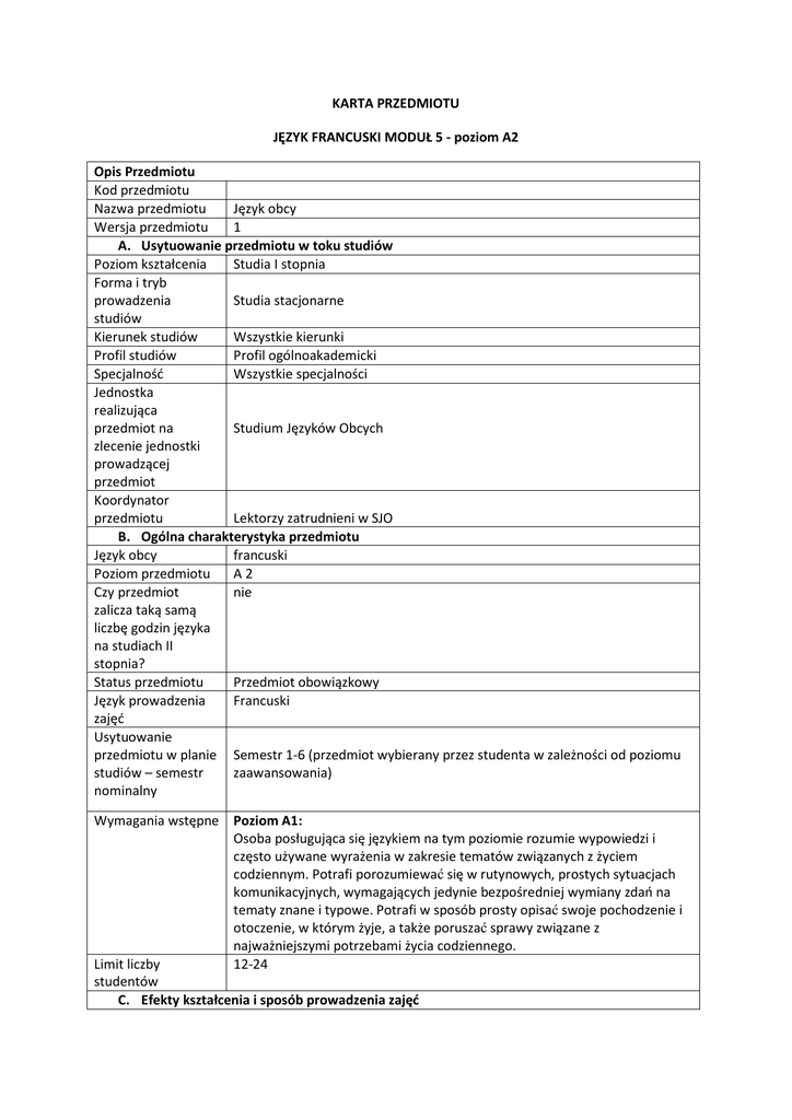 KARTA PRZEDMIOTU francuski M5